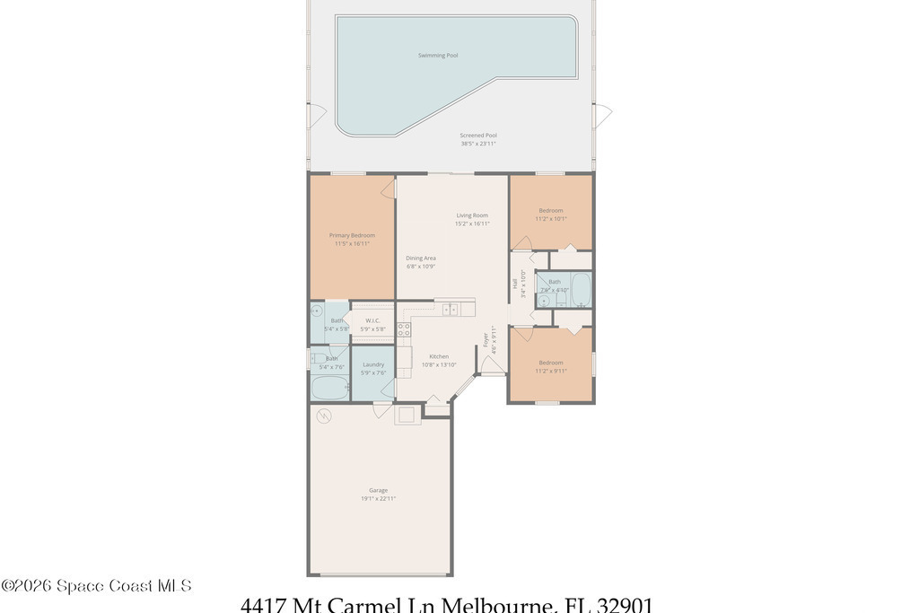 Move-In Ready Pool Home with Impact Windows, Modern Updates & Insurance-Saving FeaturesWelcome to this beautifully maintained 3-bedroom, 2-bathroom pool home located in the desirable Eagle Lake community on Mount Carmel Lane in Melbourne. This property offers the perfect combination of move-in ready convenience, major system upgrades, and Florida lifestyle living.From the moment you arrive, the home's modern sage green exterior, black entry door with coded lock, decorative iron accents, and landscaped yard with palm trees and fresh mulch beds create outstanding curb appeal.Inside, the home features modern updated light fixtures and ceiling fans throughout, creating a fresh and contemporary feel. The home is truly turn-key, making it ideal for buyers looking for a worry-free purchase! Tons of updates!