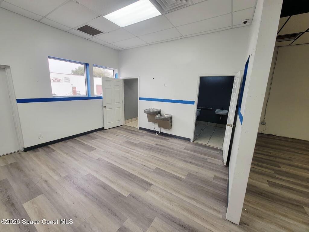 Come bring your business to be a part of the newly renovated Suntree Business Center. This flex space has a waiting area, 2 bathrooms, 'Great' Room over 1,450 sq. ft. wide open for any type of business. With over 16K vehicles passing every day, 140+ tenants/businesses, 5 onsite food trucks, copy center, conference room and a luxurious outdoor entertainment space with waterfalls, this building has a lot to offer any type of business and their clients. The complex has a leasing and management office, maintenance supervisor and staff onsite for any immediate support if needed. Stop by today for your private viewing of this flex/industrial space recently utilized as a performing arts studio.