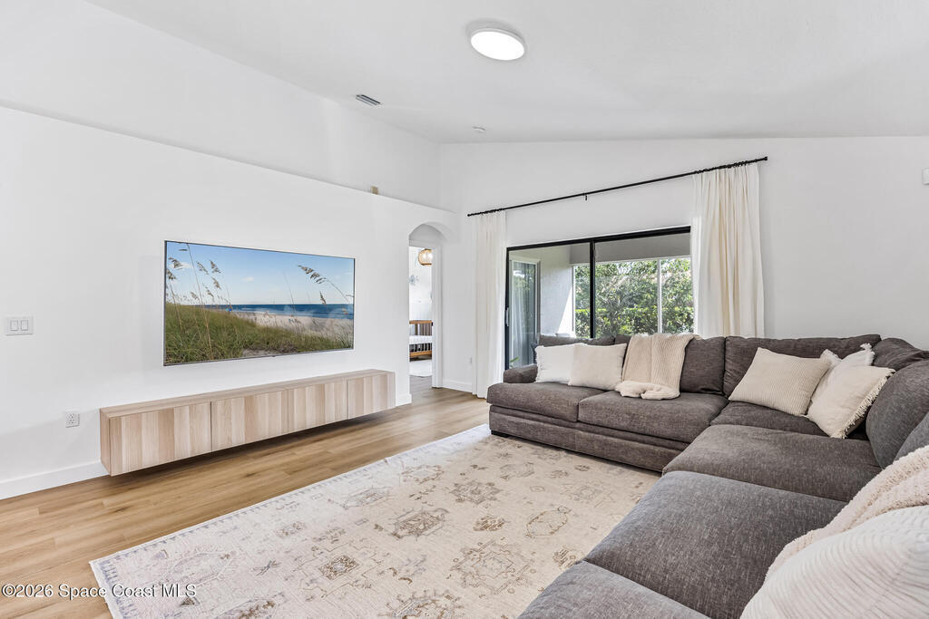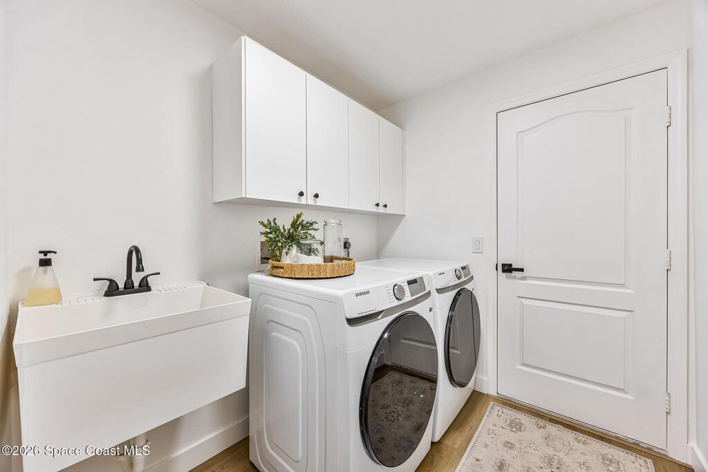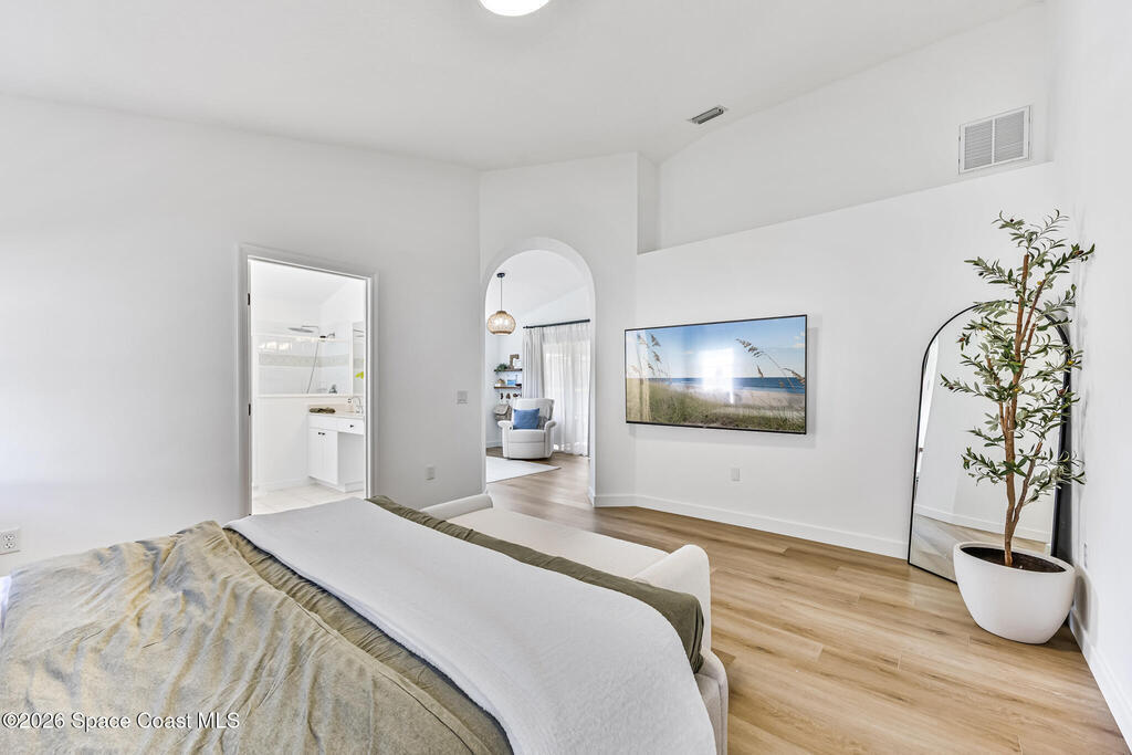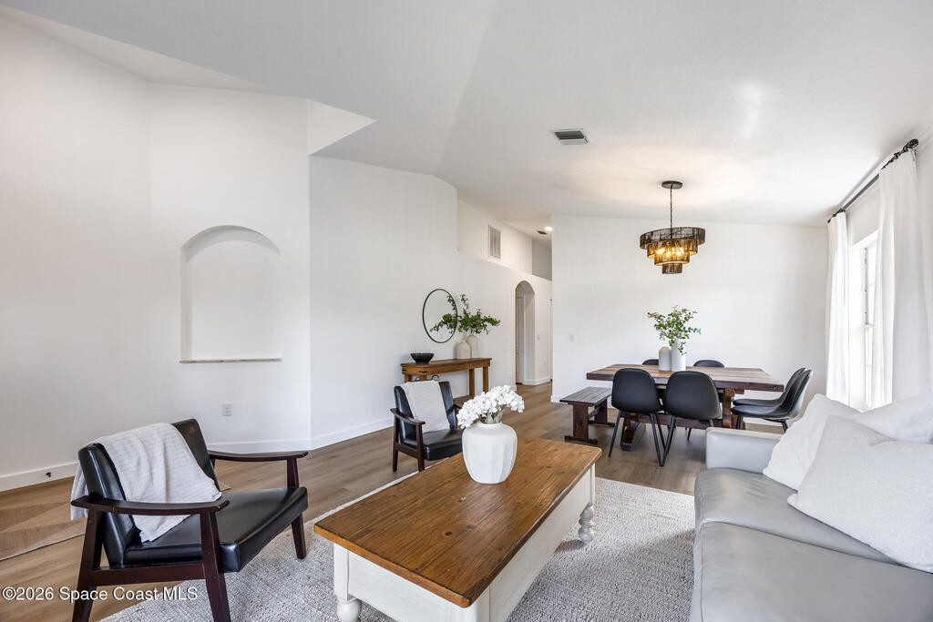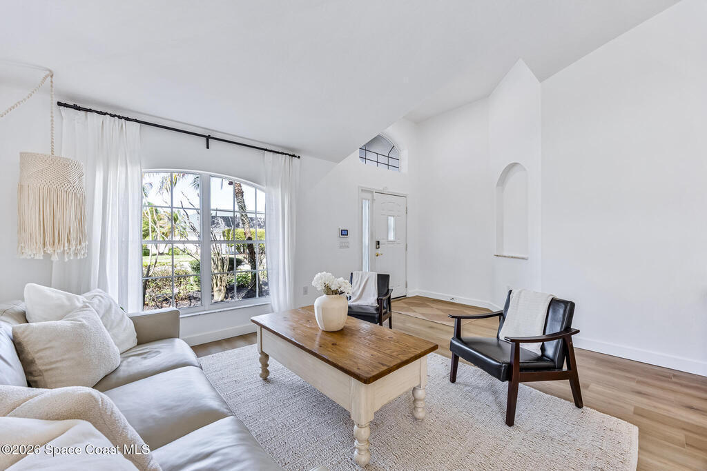Beautifully upgraded home in Citrus Creek with modern finishes and thoughtful improvements throughout. Recent updates include new flooring, fresh interior paint, updated baseboards, door handles, outlets, light switches, stylish lighting, a new HVAC system, and electric blackout blinds in every room for comfort and privacy. The fully renovated kitchen features new cabinetry, quartz countertops, a farmhouse sink with upgraded faucet, glass rinser, pot filler, large island, brand-new appliances, and a custom bar area--perfect for entertaining. Bathrooms have been tastefully refreshed, including a guest bath with a new vanity, toilet, faucet, mirror, light fixture, and exhaust fan, and an updated primary bath with new faucets, lighting, and exhaust fan. The spacious primary bedroom also offers a versatile bonus room ideal for a home office or nursery. Water filtration system is negotiable. Nursery pendant light and entry macrame light do not convey.