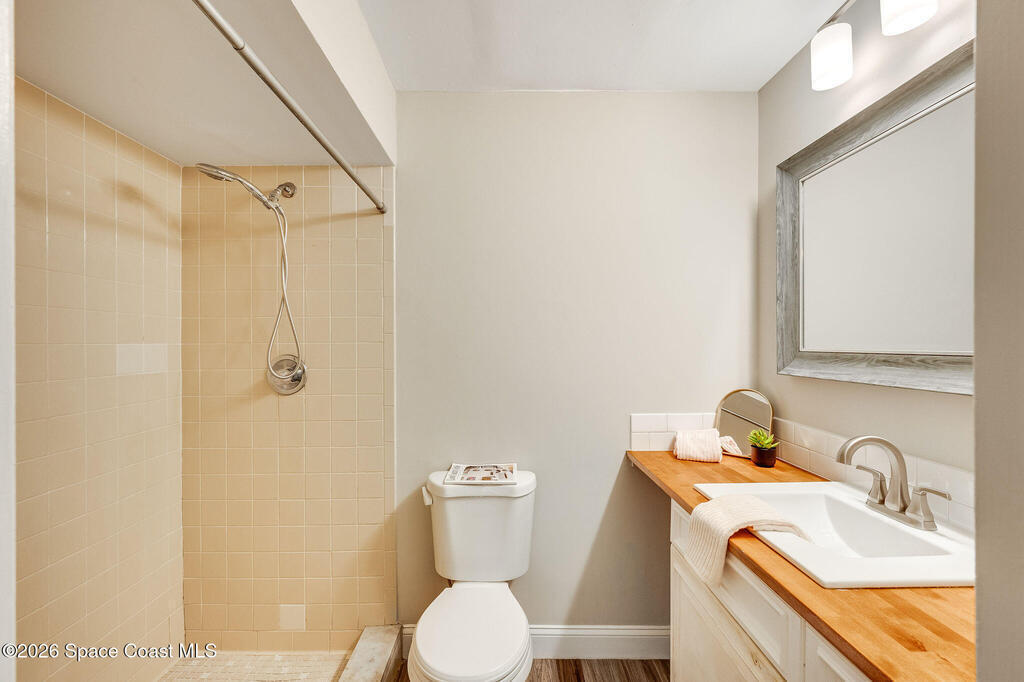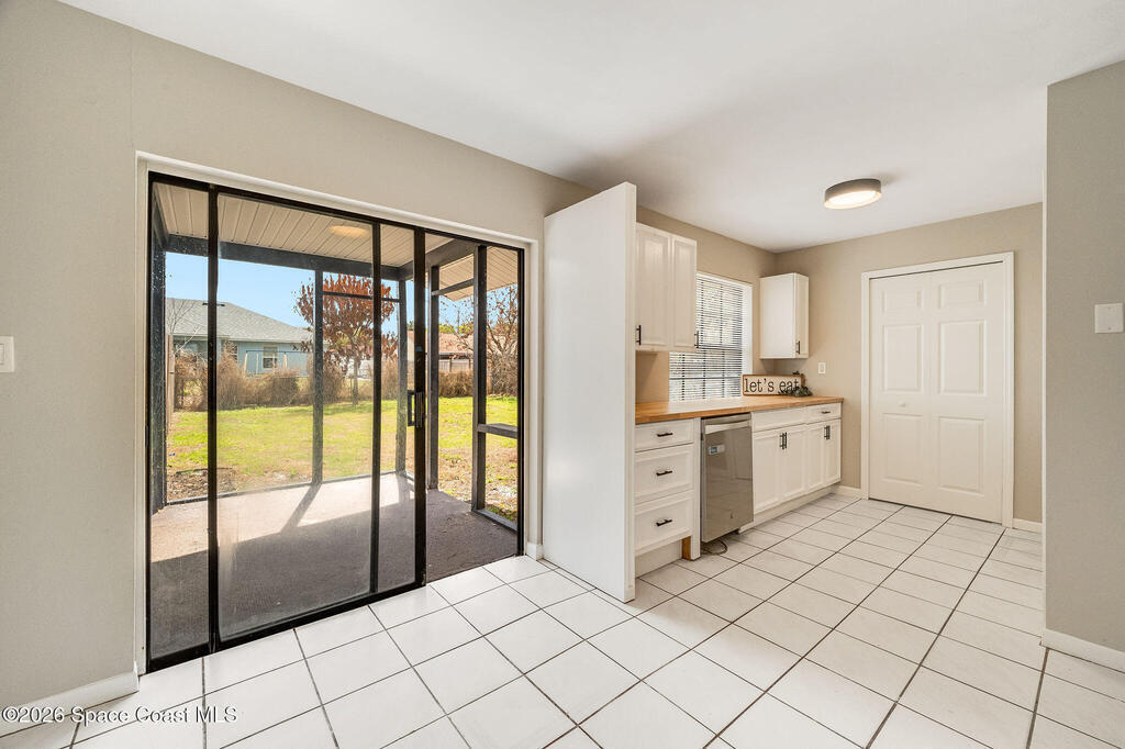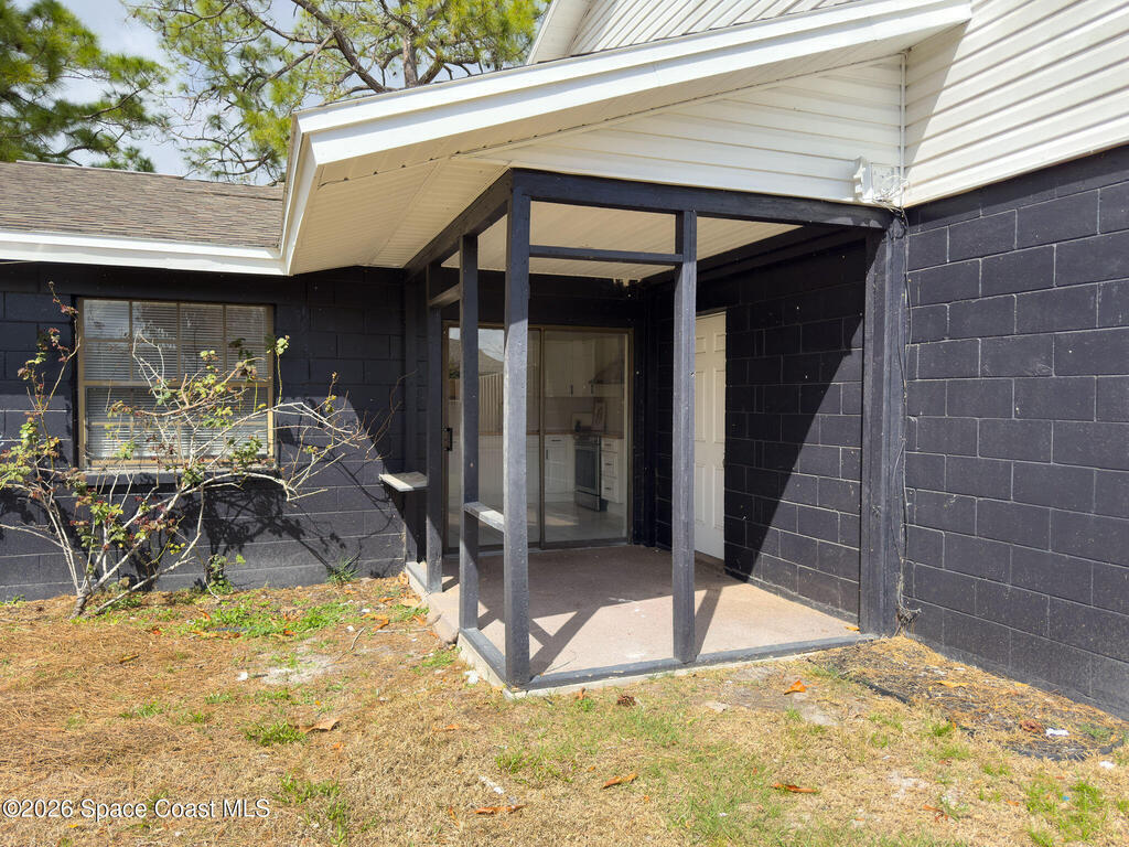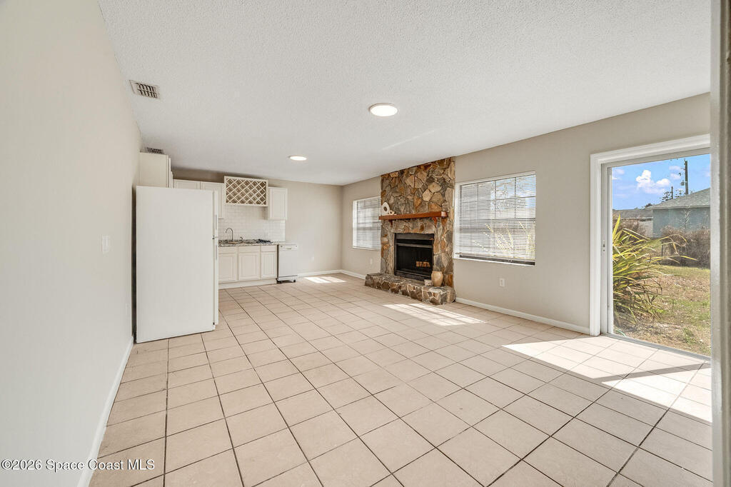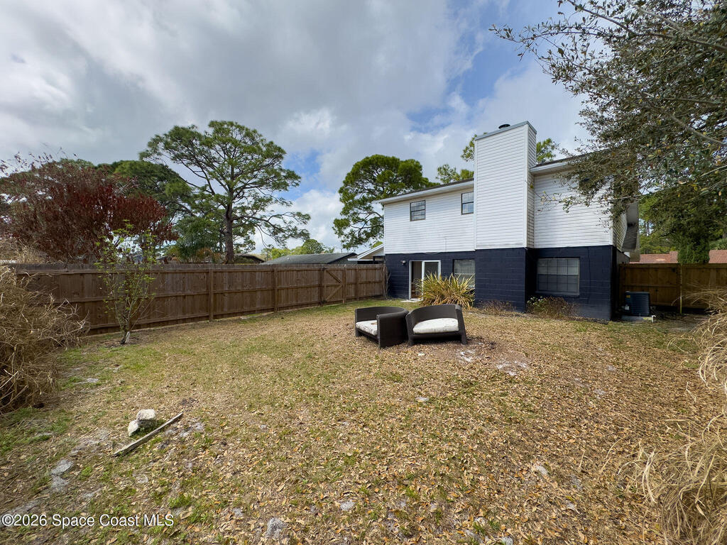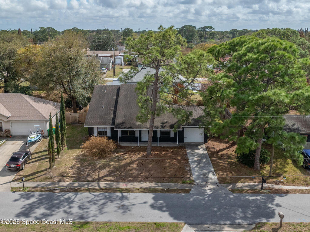 This unique 4-bedroom, 3-bath home offers 2,319 sq ft of flexible living space and a layout full of possibilities. The standout feature is a separate living apartment with its own private entrance and private backyard, ideal for multi-generational living, guests, or a private retreat. A welcoming open front porch adds charm and the perfect spot to relax. The main home features a bright white kitchen with butcher block countertops, an indoor laundry, and sliding doors that open to the outdoors. The apartment offers a spacious living and kitchen area with a cozy fireplace and a large upstairs bedroom, creating a comfortable and private living space. A one-car garage with a newer garage door adds convenience. Updates include roof (2015), HVAC (2014), water heater (2014), and sliding doors (2015). Centrally located in Port St. John with easy access to highways, shopping, dining, and area employers. This is a must-see for yourself!