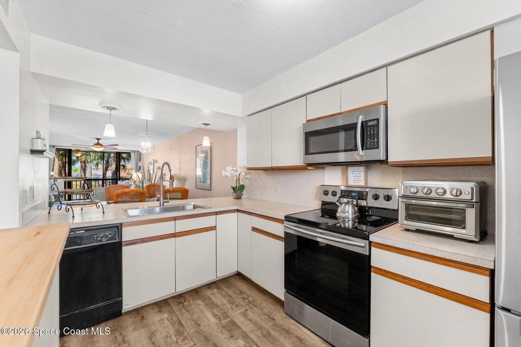 Rare direct waterfront condo in a gated community with fair HOA fees and navigable canal access to the Banana River -- plus an AVAILABLE BOAT SLIP with NO additional fees! This is true Florida living. Watch rocket launches right from your screened balcony and unwind each evening with incredible sunsets and panoramic water views.The open layout is bright and inviting with thoughtful upgrades throughout, plus a 2024 roof and A/C and 2023 water heater for peace of mind. Resort-style amenities include cable, internet, insurance, covered parking, heated pool, waterfront gazebos, kayak launch, gym, fishing pier, clubhouse, walking paths and BBQ areas.Minutes to Port Canaveral cruises, local favorite beaches, dining, shopping and conveniently close to Cape Canaveral Hospital. NASA is approximately 30 minutes away, with Orlando International Airport and world-renowned theme parks about an hour. Waterfront, gated, and truly boater-friendly -- this is the Florida lifestyle done RIGHT!