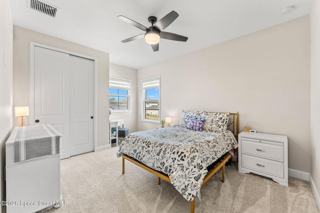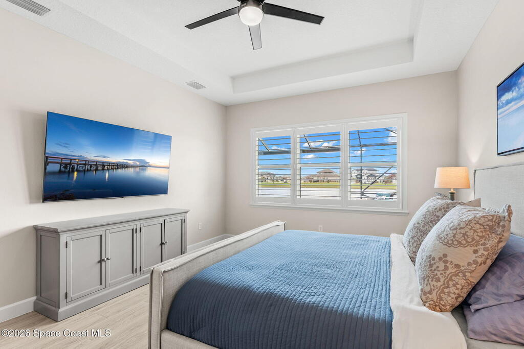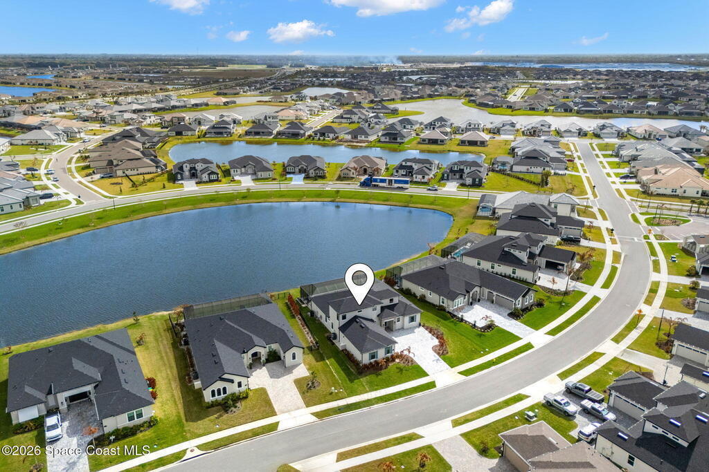 Experience refined living in the gated Laurasia community of Viera, a premier golf cart-friendly neighborhood celebrated for its elegance and convenience. This stunning two-story home offers 5 bedrooms, 4.5 baths, and a side-entry 2-car plus golf cart garage. The open-concept design centers around a gourmet kitchen featuring Level 5 cabinetry, quartz countertops, a pot filler, and a reverse osmosis system. Relax or entertain in the panoramic screened pool area, complete with shell lock pavers for slip-resistant style and fully automated Hayward pool controls for effortless enjoyment. The luxurious primary suite includes a spa-like bath with soaking tub and separate shower. Additional upgrades include a tankless natural gas water heater for endless efficiency. Zoned for A-rated Viera Elementary, Middle, and High School, this home blends exceptional craftsmanship with the vibrant Viera lifestyle.