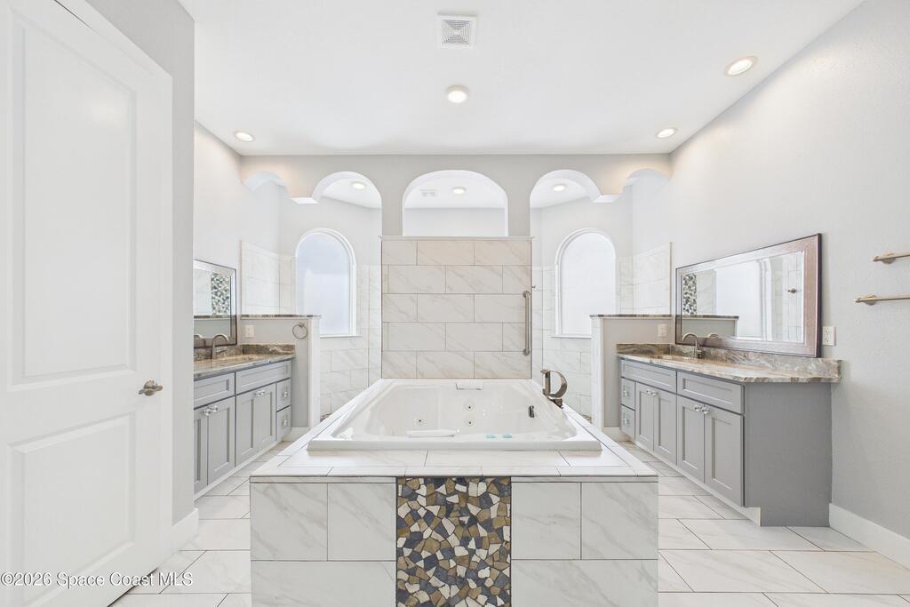 *Some photos digitally staged* Welcome to an exceptional opportunity in the heart of Palm Bay- a beautifully designed 2020 custom home that blends modern luxury, space, and functionality on a generous corner lot.From the moment you arrive, the home's circular driveway, expansive lot, and impressive two-story presence create undeniable curb appeal. Step inside and you'll immediately notice the soaring ceilings, open-concept design, and abundant natural light that make the home feel both grand and inviting.The centerpiece of the home is the chef-inspired kitchen, thoughtfully designed for both everyday living and entertaining. Featuring a large island, breakfast bar seating, double ovens, gas range, and extensive cabinetry, this kitchen flows seamlessly into the main living and dining areas--perfect for hosting gatherings or enjoying relaxed evenings at home.