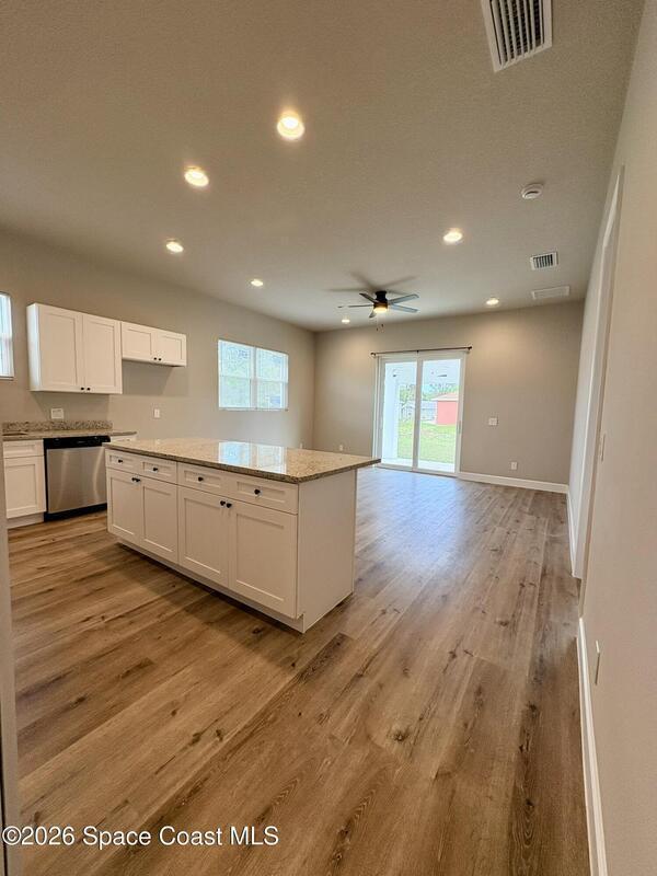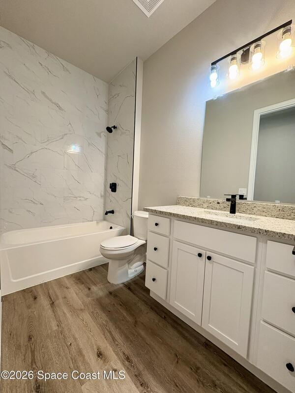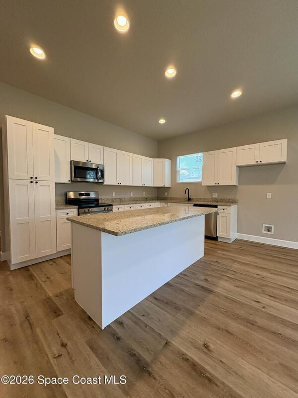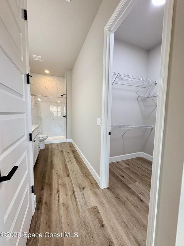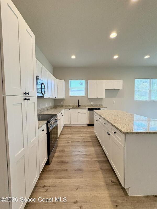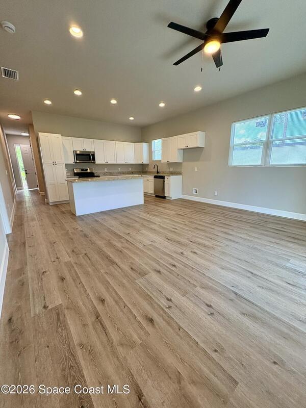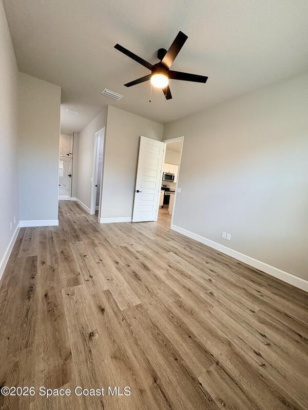 Be the first to live in this stunning brand-new modern home in Palm Bay. Architecturally striking and never lived in, this residence features soaring 10-foot ceilings, abundant natural light, and elegant tile flooring throughout. The stylish kitchen showcases quartz countertops and stainless steel appliances, while the bathrooms feature sleek tiled showers and contemporary finishes. Impact windows add comfort and peace of mind. A rare opportunity to rent a distinctive home with modern design and upscale finishes.