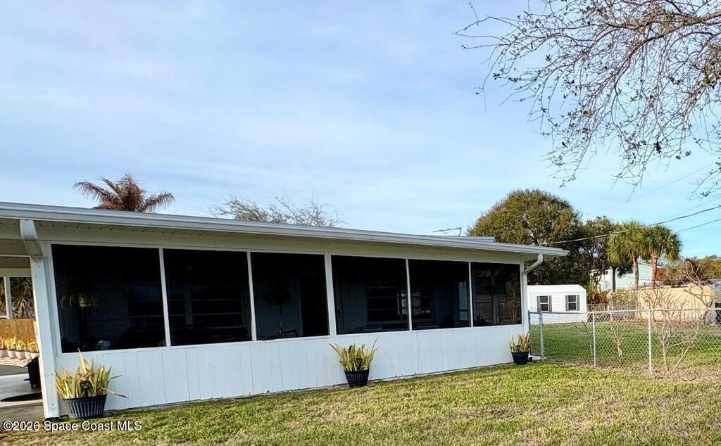 Adorable starter home with no HOA . Watch rocket launches from your back yard and enjoy your large screen porch. Ample sized lot with plenty of room for pool, detached garage, boat or RV parking. Vast and unusual varieties of Plumeria plants. Well and Sprinkler system . AmVet Epoxy flooring in Carport and porch. Close to beach, children's parks , school bus stop, shopping and restaurants . Neighborhood with sidewalks and bicycle friendly nature paths.Recent four point inspection with all items addressed.