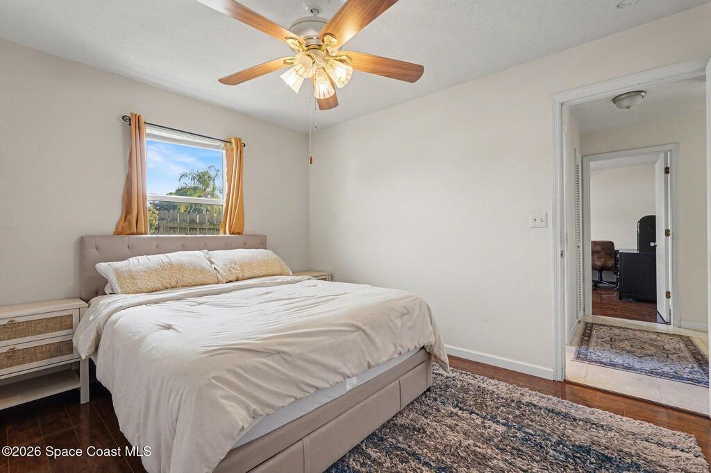 Nestled in the desirable NW Palm Bay community on a fully fenced corner lot, this charming split floor plan, 3-bedroom, 2-bath offers the perfect blend of comfort and Florida lifestyle living. This laid-out living space, the inviting open floor plan is filled with natural light and features laminate flooring in the main living areas and tile in the wet zones, creating a warm and welcoming atmosphere. The eat-in kitchen with a breakfast bar flows seamlessly into the living area, ideal for everyday living and entertaining. Step outside to your private screened-in pool and expansive tiled porch -- an entertainer's dream and a serene spot to relax year-round. Practical upgrades such as a newer roof and hurricane shutters on all windows provide peace of mind, while the 2-car attached garage and ample driveway offer plenty of parking. Also listed for sale, very pet friendly rental.
