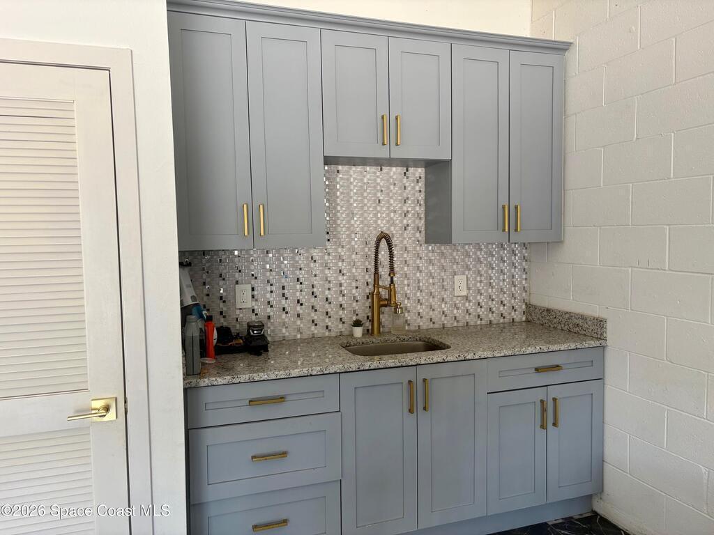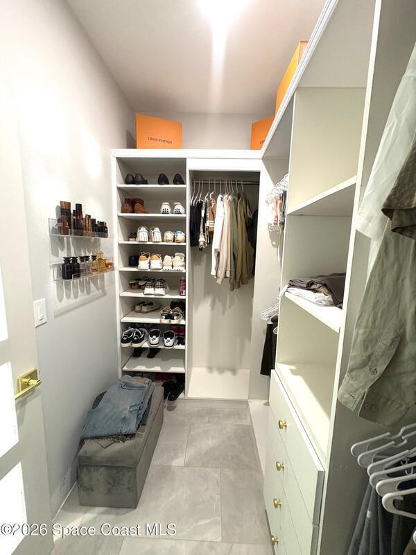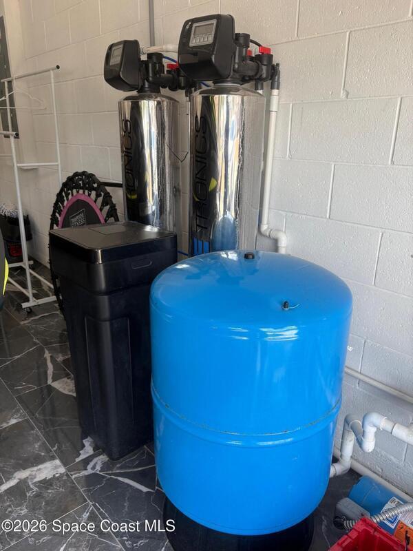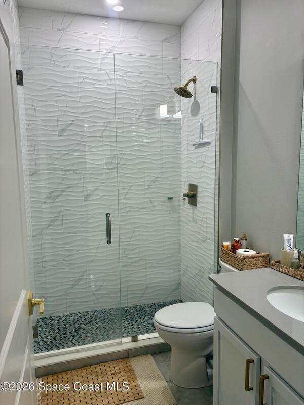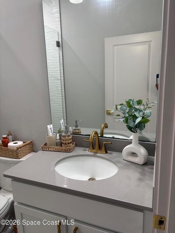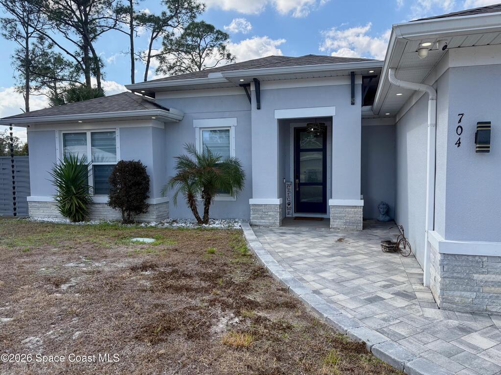 Welcome to one of the most upgraded 4-bedroom homes in SW Palm Bay! This high-quality, energy-efficient home is designed to produce more energy than it consumes with its solar panel system. Interior upgrades include quartz countertops, ceramic glossy tile flooring, crown molding, Energy Star stainless steel appliances, gold faucets and hardware, smart home features, security cameras, stone accent walls, zebra window treatments, and an electric fireplace. The primary suite features a fully customized walk-in closet and a luxurious shower with double shower heads. Step outside to a spectacular oversized gazebo equipped with a separate Wi-Fi, refrigerator, freezer, sink, bar seating, fan, granite countertop, and privacy curtains--perfect for entertaining. The fully paved and fenced backyard expands the outdoor living space, while the oversized glass front door and glass pantry door add a modern touch.