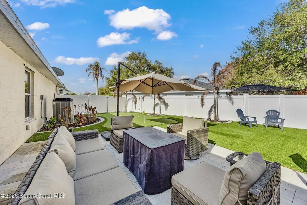 Beautiful 3-bedroom, 2-bath split floor plan pool home located on a cul-de-sac in the desirable Oak Grove community, backing up to a private preserve for added privacy and peaceful views. Situated on a spacious .31-acre lot, this property offers plenty of room to enjoy both indoor and outdoor living. Major updates include a 2024 roof and 2022 AC. The home features an updated kitchen with granite countertops, new bathroom vanities, and a functional layout perfect for everyday living and entertaining. Step outside to a screened-in inground pool and a fully updated backyard featuring a high-quality AstroTurf putting green, two paver patios, and LED landscape lighting throughout. The Oak Grove community also offers a playground for children, and the home is centrally located to everything Melbourne has to offer and within a highly desirable school district. A perfect combination of location, privacy, and upgrades