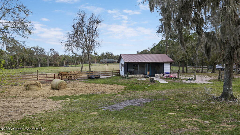 Private country living with room to breathe on 2.9 acres! This unique property features a main home plus a detached cottage for guests, family, or equestrian storage. The main home offers a dual primary suite layout, each located on opposite sides of the home, with luxury vinyl plank flooring throughout. The charming kitchen includes all appliances and connects to a convenient mudroom hallway leading to the 2-car garage. Just off the living area is a versatile media/office space ideal for working from home. Both bathrooms feature walk-in showers, updated vanities, with the primary bathroom being recently updated. Enjoy outdoor living with a spacious front porch and a large screened rear patio overlooking the expansive yard including fenced in pasture area. Across the yard sits a separate cottage efficiency with full bath and kitchenette area, plus separate electric, cable, and septic. Roof 2020, AC 2023, 2025 Aerobic Septic, New Siding, and Newer Water Softener System.