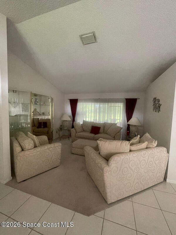 Palm Bay corner lot overlooking canal and natural land. This home is super clean with a foyer opening up to the formal living and the dining rooms. Tile leads into the kitchen with breakfast eat-in area. The Bar overhang joins the family room. A Pantry, large Linen Closet, and sliding glass door access to the open Patio from the back Bedroom area. The Screened porch with two ceiling fans allows you to enjoy the cool outdoors in the evening. The screened Porch access is also available from the large primary Bedroom. The Walk in closet , linen closet and a garden tub make this a great private space! The 2 car Garage is over-sized with custom sliding screens and garage laundry area. Also there are the A/C, water heater, fridge, and dishwasher.