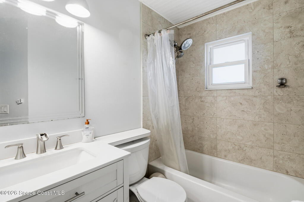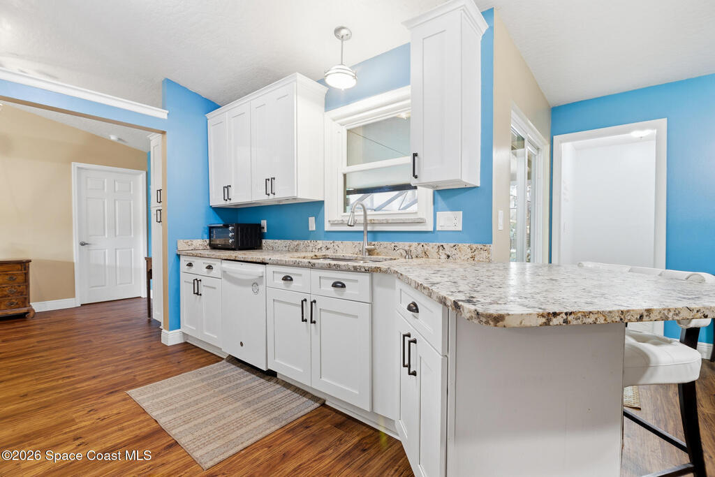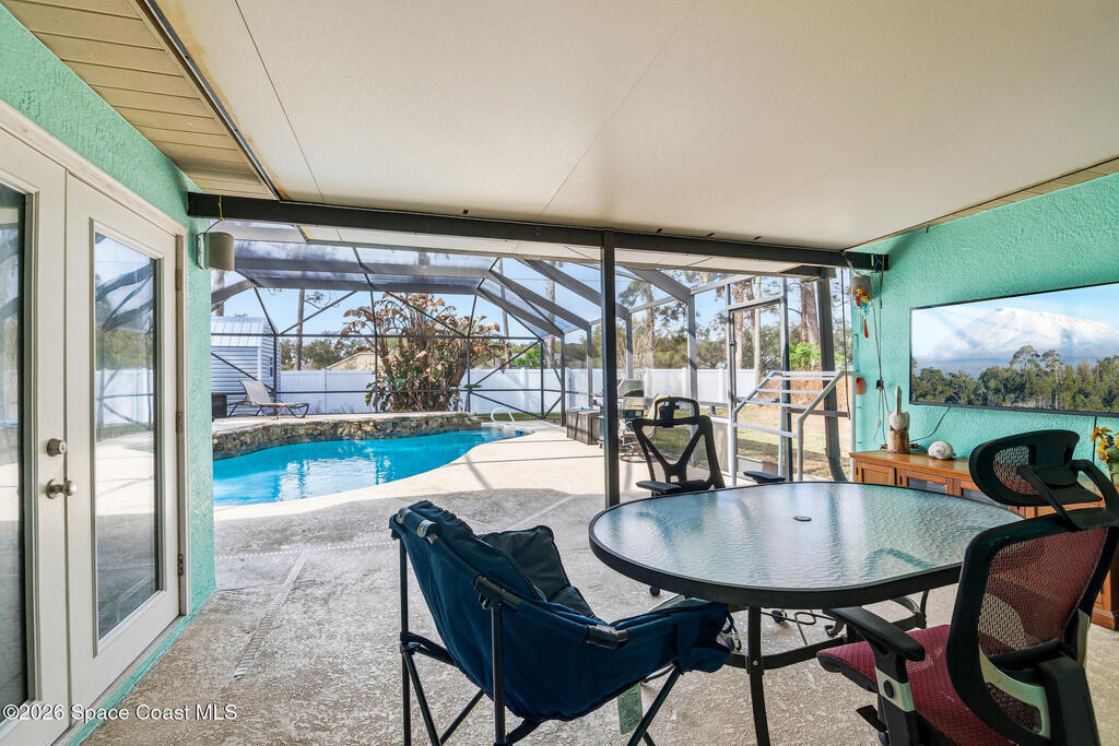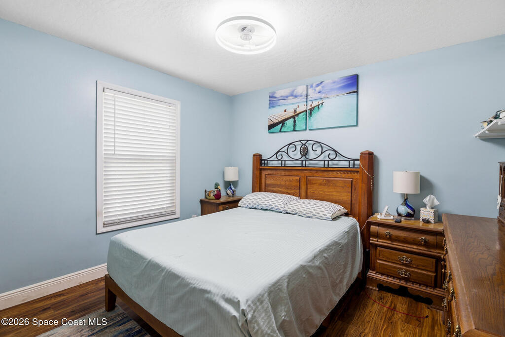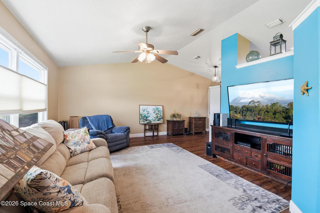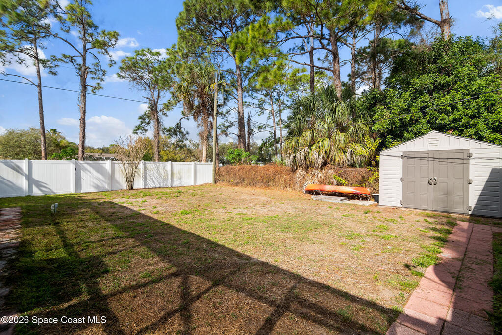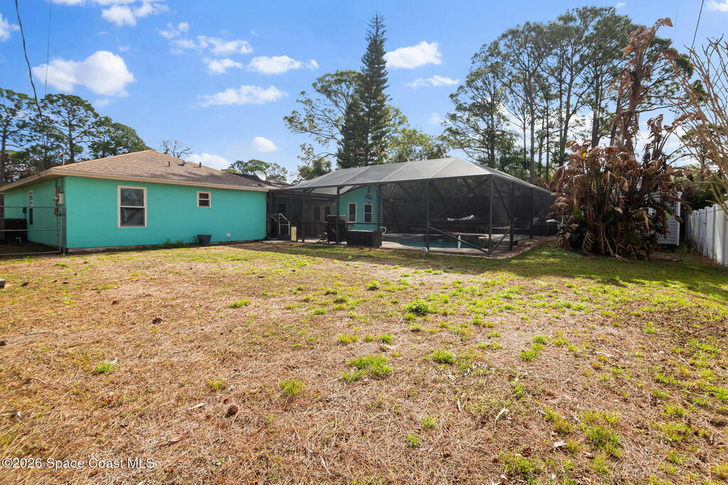 Tucked away on a private lot with a peaceful canal backdrop, this beautifully updated home offers the perfect blend of comfort, style, and space in desirable SE Palm Bay. Situated on nearly a quarter-acre, the property boasts a huge fully fenced backyard with plenty of room for your RV, boat, or future outdoor additions.Step inside and you'll immediately appreciate the exceptional open floor plan enhanced by vaulted ceilings, creating an airy and welcoming feel throughout the home. Elegant luxury vinyl plank flooring flows through the main living areas, complemented by coordinating laminate in the primary suite - no carpet anywhere, and finished with 6'' baseboards for a polished look.This thoughtfully designed home features 3 bedrooms and 2 beautifully updated bathrooms, along with a spacious flex room off the primary suite - ideal as a home office, nursery, fitness space, or private sitting room. The primary suite includes a walk-in closet and an updated ensuite bath with a newer