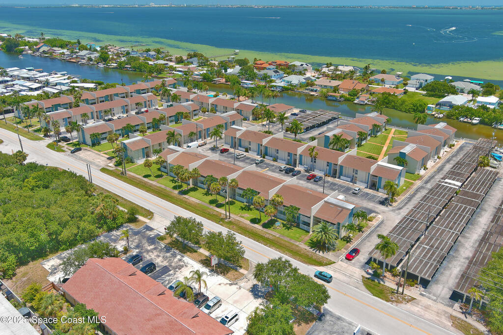 Excellent opportunity to buy a second floor unit with WATER VIEWS! With some updating, this condo is perfect as a second home, or to live affordably and so close to Cocoa Beach. There's lots of storage space and the air conditioner and water heater were installed in 2017. Enjoy evenings on the balcony overlooking the courtyard and Sykes Creek! There's an assigned carport (89) steps from the unit. The community offers laundry facilities, onsite management, a heated pool, a tiki hut and access to the canal. Live in a perfect location! You're minutes to Cocoa Beach, Port Canaveral and restaurants and shops in Merritt Island. Rt 528 is convenient to get to the beaches and to Orlando. Don't miss this opportunity!