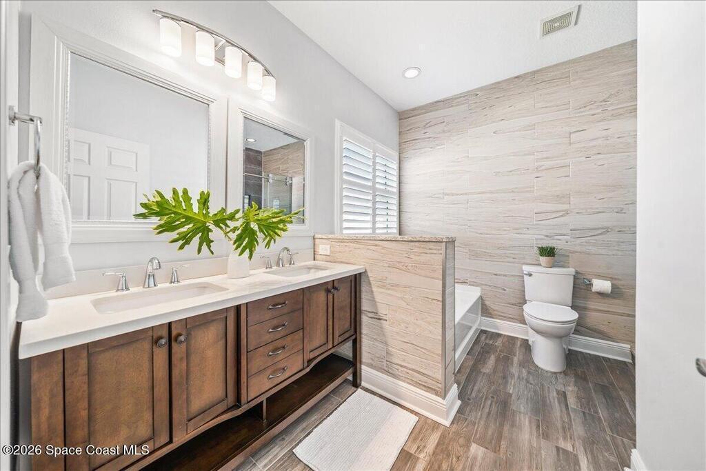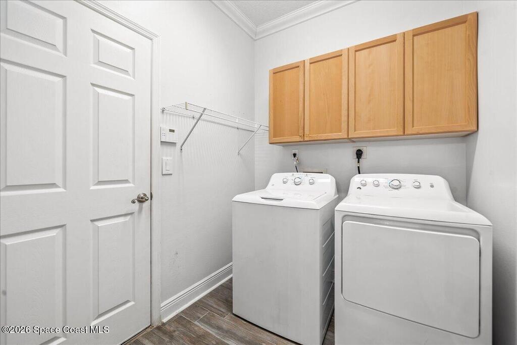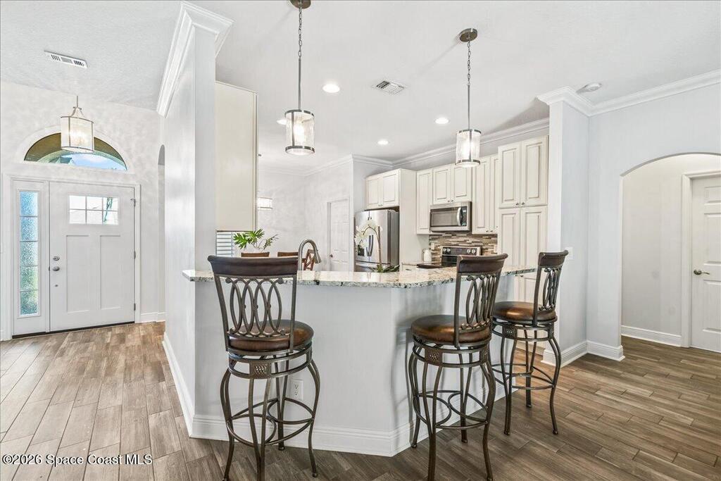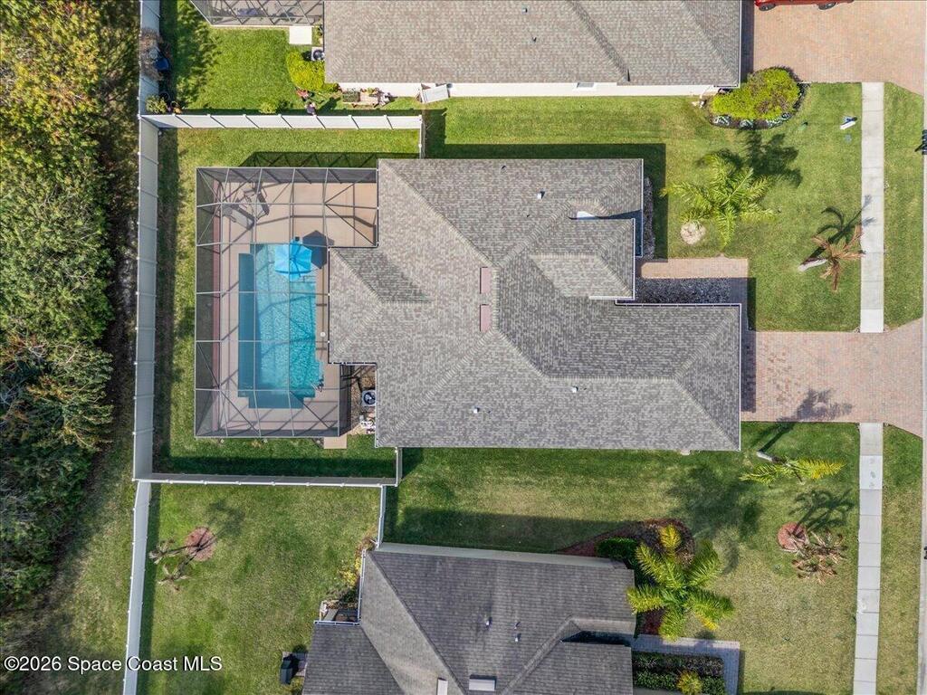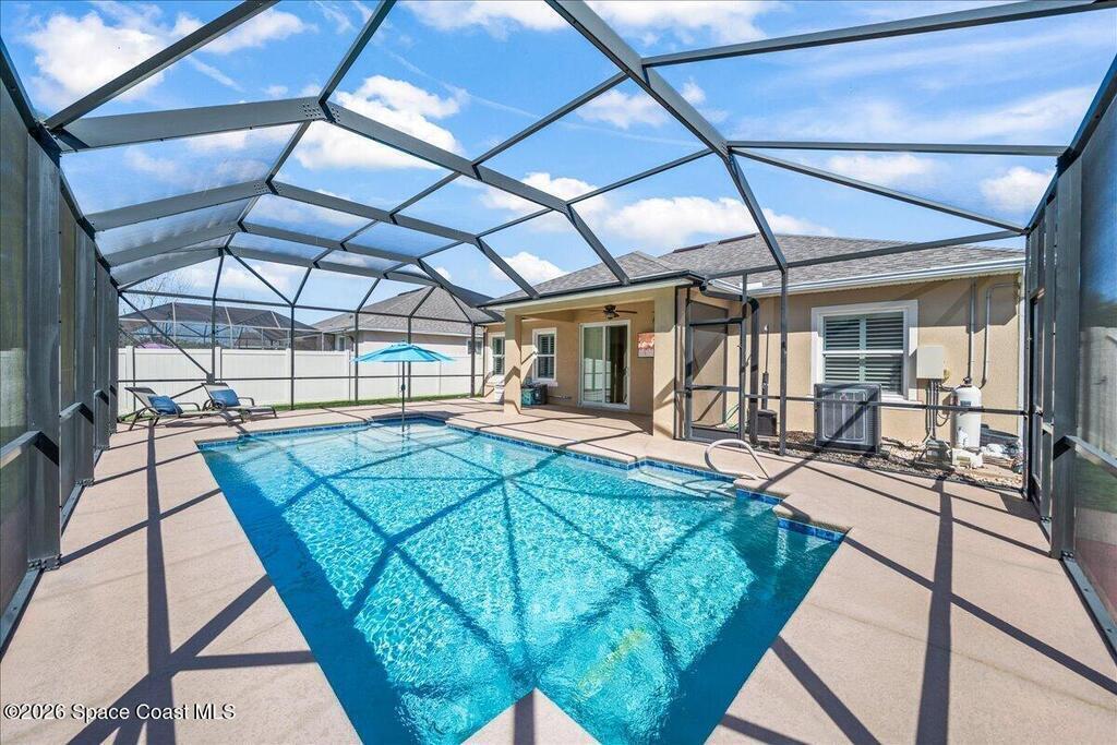Stunning, Bright and Move in Ready!This beautifully maintained 3 Bedroom, 2 Bath, plus office/flex room, 2-Car Garage pool home sits on a peaceful preserve lot in the secure gated community of Holly Trace.Inside, this home has been extensively upgraded and meticulously cared for. This home features upgraded cabinets, granite countertops, and stainless appliances, complemented by porcelain tile flooring throughout the entire home. Elegant crown molding, 51/4'' baseboards, and vinyl plantation shutters add a refined touch throughout.Major improvements include a NEW ROOF (2023), RHEEM dual-stage high-efficiency A/C (2019), NEW water heater (2026), and impact windows for added safety and efficiency. The exterior was freshly painted in 2021, and the pool screens were replaced in 2022, along with screen enclosure upgraded Nylo-Tec lifetime warranty screws. Garage is outfitted with a 220V outlet for your RV. Ownership of this home includes access to all the Bayside Lakes amenities.