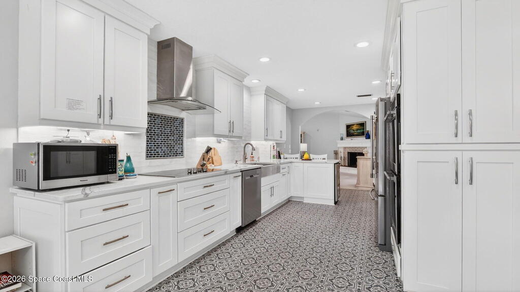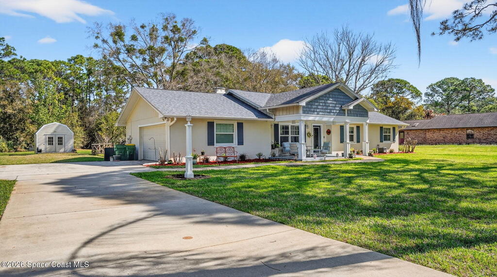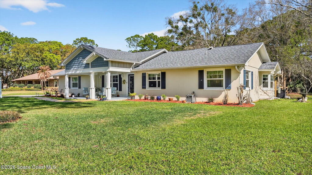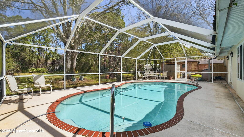 Beautiful Pool Home Situated on 1.17 Shaded Acres in Windover Farms! Open Floor Plan Welcomes You Into the Formal Living Area & Spotlights the Stone Encased Wood Burning Fireplace. Amazing Kitchen w/ Custom Cabinets, Built-Ins, Quartz Countertops, Double Oven, Cooktop, SS Appliances Plus Beverage Fridge. Bright & Beaming All-Seasons Room w/ Floor to Ceiling Windows & Sparkling Pool & Patio Views! Master Suite has Double Sinks, Walk-In Closet & Sliders to the Patio. Two More Spacious Bedrooms & Full Bath! Additional Storage in the Enclosed Laundry Room Plus a Mudroom Entrance. NEW!! Water Heater 2025, HVAC 2024, Roof 2021, Impact Windows & Garage Door in 2023, Newer Overhead Plumbing in 2021! The Property Has a 12x20 Insulated Workshop w/ Electric. The New Covered Front Porch Addition Provides More Enjoyment of the Property! Bring the RV's- 50 amp Hook-Up w/ RV Safe 6in. Poured Concrete Drive. This Home May Have Been Built in 1980's, but Everything Has Been Updated & Maintained!!