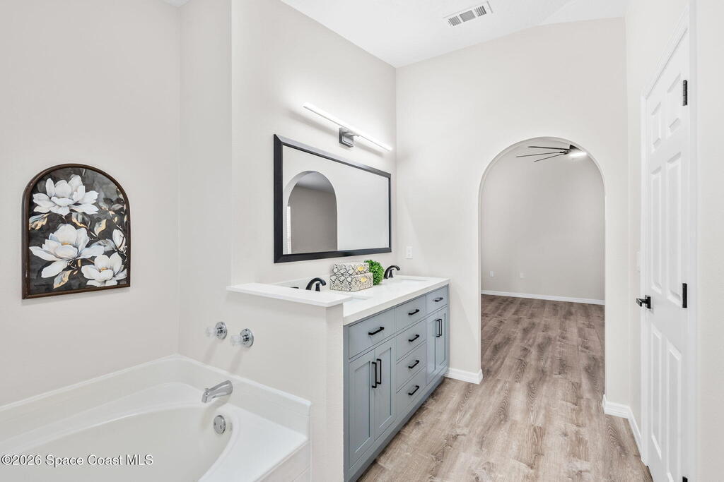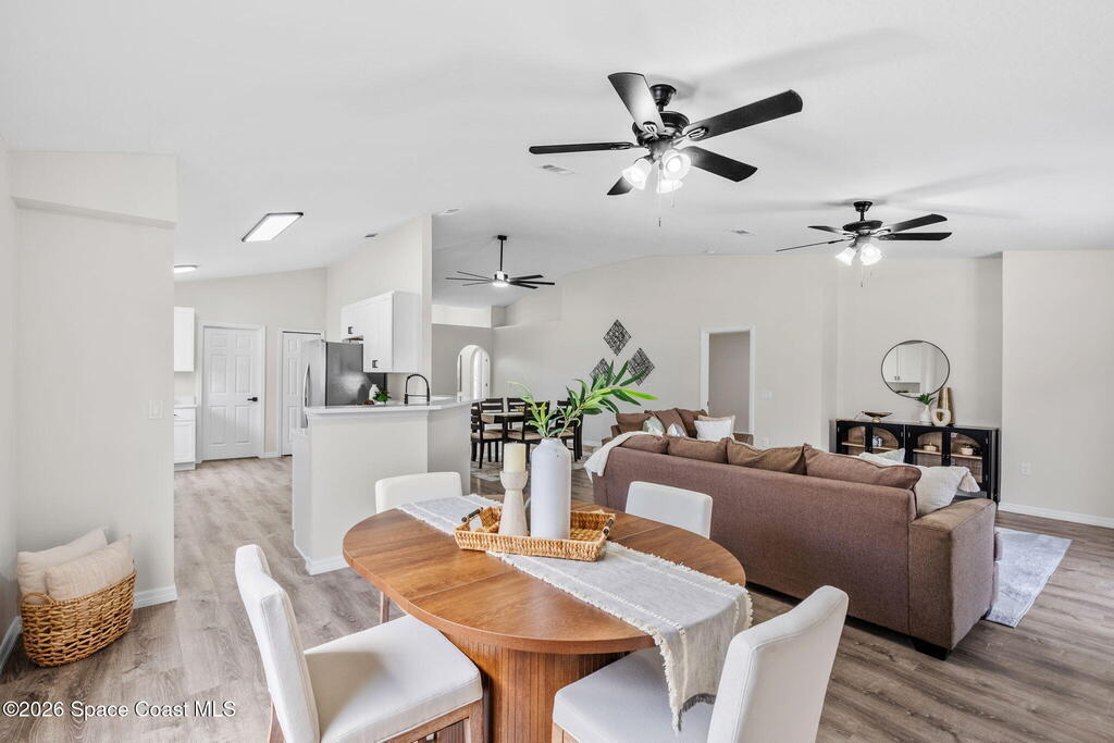 Breakfast Bar , Ceiling Fan(s) , Eat-in Kitchen , Entrance Foyer , Open Floorplan , Primary Bathroom -Tub with Separate Shower , Vaulted Ceiling(s) , Walk-In Closet(s)
