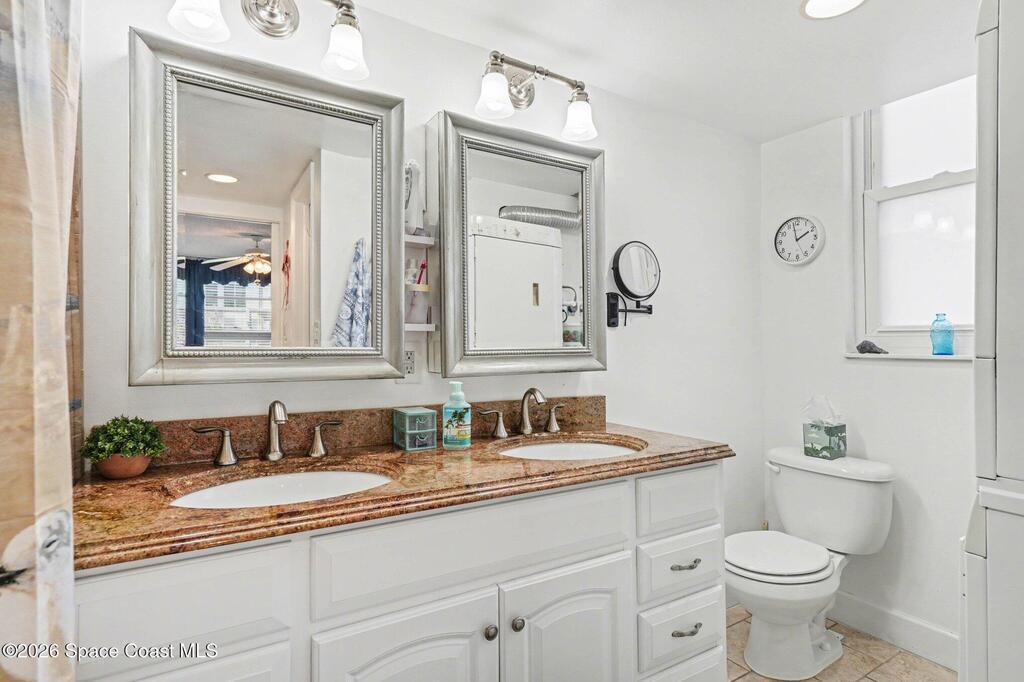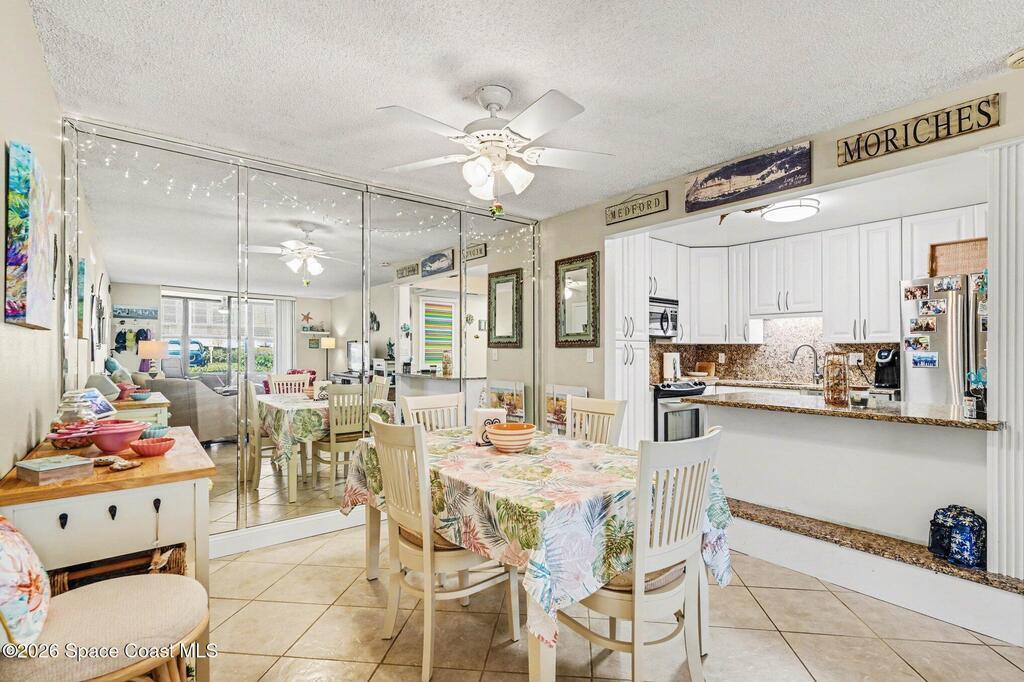 Beachside living just steps from the ocean! Beautifully updated first-floor end unit offering 2 bedrooms, 2 baths, and 1,131 sq ft of comfortable coastal living. The kitchen features granite countertops and backsplash, 42'' cabinets, rollout drawers, stainless steel appliances, and a breakfast bar. Tile flooring runs through the family room, dining room, kitchen, hallways, and bathrooms.The spacious primary suite includes double sinks and granite counters. Relax on the glass-enclosed porch, perfect for morning coffee after a walk on the beach.And the best part -- this unit is being sold FULLY FURNISHED. Everything stays. Furniture, kitchenware, cookware, small appliances and more. Truly move-in ready -- just bring your toothbrush.Includes in-unit laundry and a large private storage room. Community amenities feature a heated pool, clubhouse, tennis, shuffleboard, fitness center, billiards and more.Ideal for full-time living, snowbirds, or investors with a 2-month minimum rental.