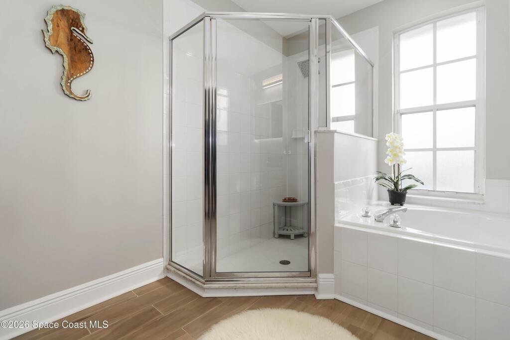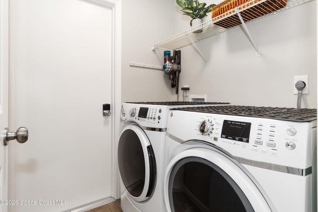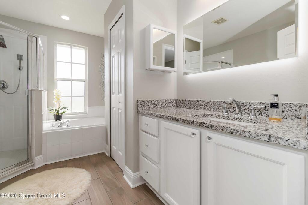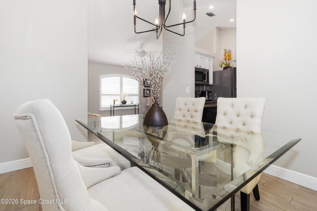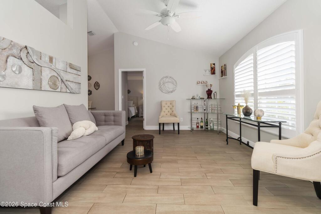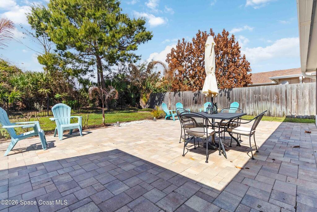 Nature preserve views and a dog-friendly fenced backyard just 6 miles to the beaches of the Space Coast. Beautiful 3 bedroom, 2 bath, 2-car garage home in sought-after Springs of Suntree backing to a peaceful preserve. Spacious floor plan features formal dining and sitting rooms, large living room, and kitchen dinette with built-in cabinets and wine fridge. Granite countertops in kitchen and bathrooms. High end Washer & Dryer. Sliders from the living room and primary suite open to a screened porch and brick paver patio, perfect for outdoor entertaining. The primary suite includes a walk-in closet, garden tub, walk-in shower, and linen closet. Enjoy private backyard living with a fully fenced yard and iron rear fence overlooking the preserve. Community amenities include pools, fitness center, and pickleball courts. Convenient to Whole Foods Market, Trader Joe's, Costco, shopping, dining, pet services, and I-95. 45 mins to Orlando Int'l Airport and 1 hour to ''world famous'' Theme Parks