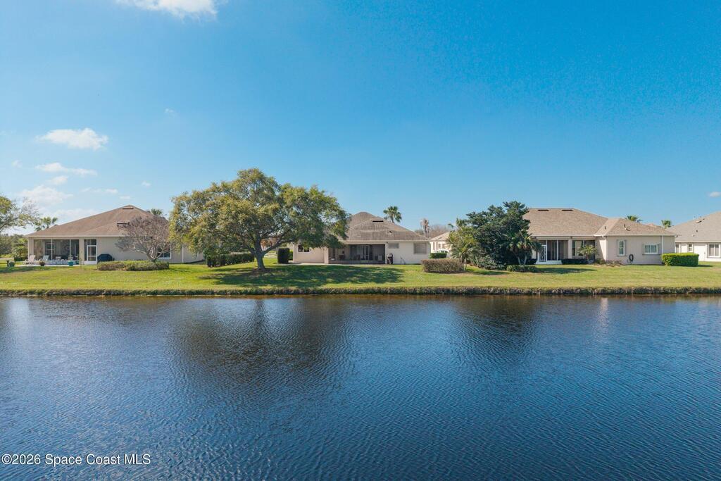Prime waterfront living in private, gated 55+ community of Grand Isle. This beautifully updated 4 BD, 2 BA home w/ 3 car garage is ideally positioned on the largest lake in the neighborhood, offering serene water views. Recent upgrades include fully remodeled kitchen, laundry room, & guest bath, along w/ High-end impact windows provide peace of mind, while wood & tile flooring flow throughout, & new flooring added in several areas. The inviting living room features a gas fireplace, & the large screened back porch & paver back lanai enhances outdoor living. The north-facing rear porch provides shade most of the day, allowing you to comfortably enjoy the tranquil lake viewsOptional furnishings designed in a mid-century modern style that complements the Florida lifestyle for a move-in-ready opportunity. Grand Isle residents enjoy maintenance-free living w/ lawn care included & exterior painting every 8 yrs. Resort-style amenities include clubhouse, tennis, pickleball, & pool, Must See!!