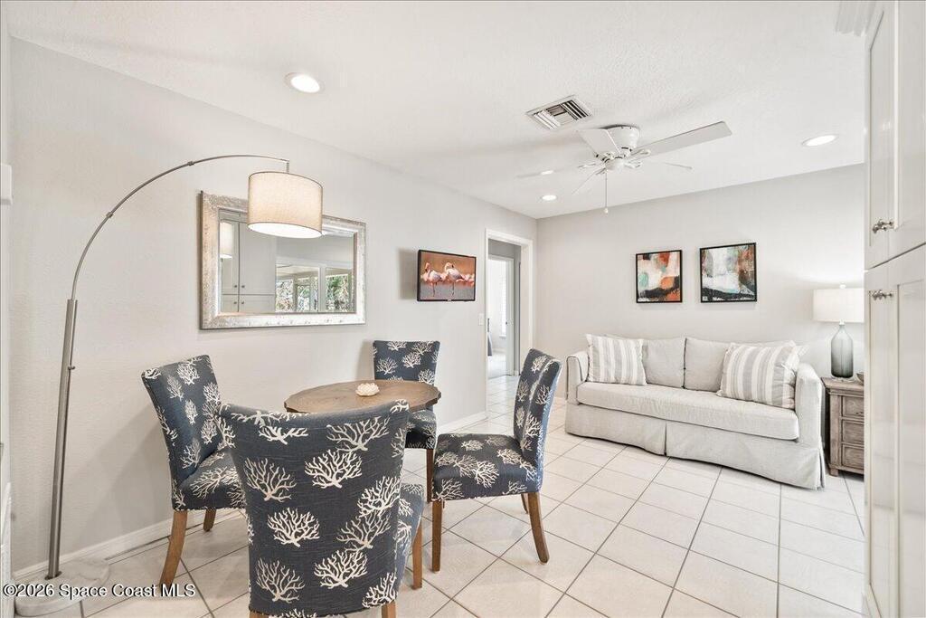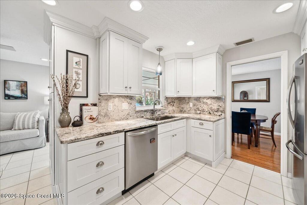 4-bedroom POOL home in Satellite Beach just 2 BLOCKS FROM THE OCEAN! This well-maintained concrete block home features IMPACT WINDOWS & DOORS throughout , 1,554 SF of living space plus a 276 SF screened porch with tile floors overlooking a fenced backyard and freeform pool w/ sitting ledge and tropical landscaping - Your Private Oasis. The oversized 2-car garage includes a storage area and washer/dryer. Major updates: new roof (2023), HVAC (2023), new AC ducts (2025), water heater (2024) and no cast iron pipes. Beautiful white kitchen with deluxe cabinetry, granite countertops & backsplash. No HOA and room to park a boat or RV beside the home. Walk, bike or take your golf cart/LSV to the public beach access just two blocks away. Convenient to Publix, pickleball and tennis clubs, 10+ restaurants, coffee cafes, boutiques, farmer's market, top-rated schools, and major employers (Patrick Space Force, SpaceX, KSC, L3Harris, Northrop Grumman), with easy access to Pineda Causeway/404 and I-95