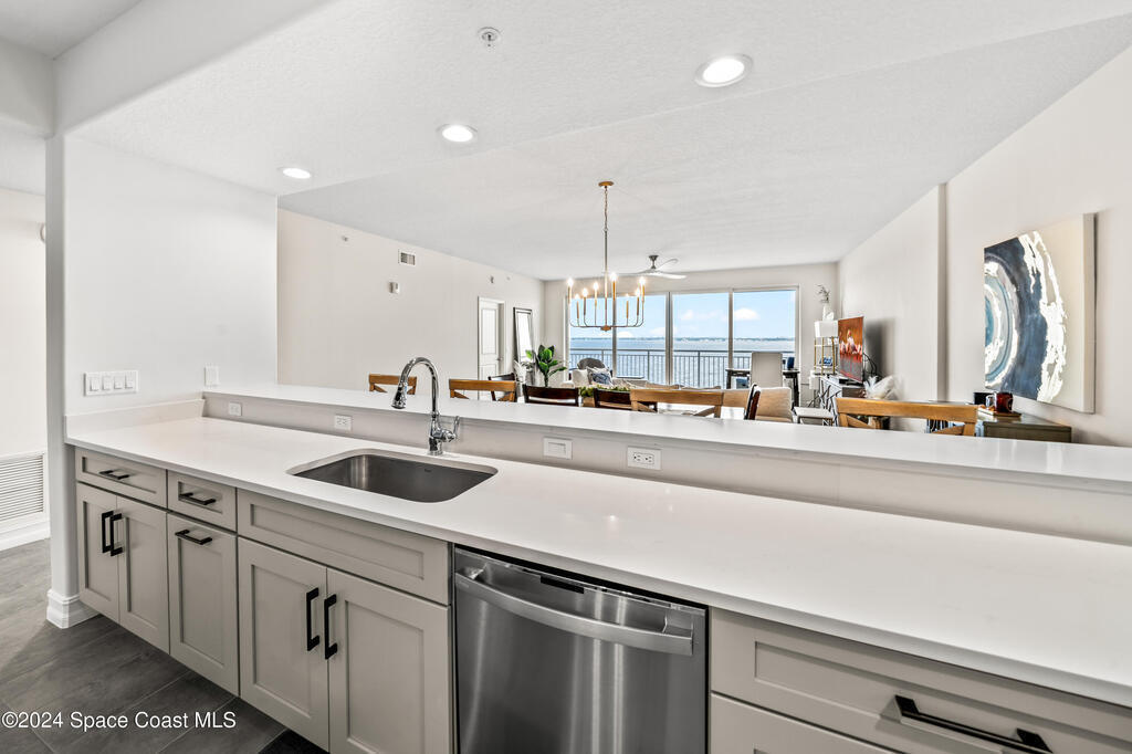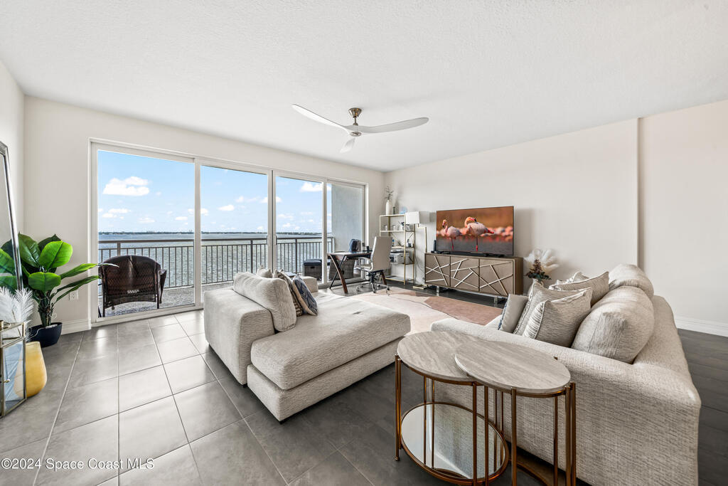 This luxurious 3-bedroom, 3-bath condo, built in 2022, offers 2,082 sq. ft. of living space and a 165 sq. ft. balcony with breathtaking Indian River and Indialantic skyline views. The home features upgraded tile floors throughout, impact-resistant glass sliders, and a chef's kitchen with a waterfall island, quartz backsplash, soft-close maple cabinetry, GE appliances, and a beverage fridge. The primary suite includes dual walk-in closets, separate vanities, and a large shower. The spacious laundry room adds extra cabinetry and a soaking sink. Located in a gated community with just 68 units, amenities include a heated pool, activity room, high-speed elevators, and guest parking. Association dues cover cable and internet. Minutes from downtown Melbourne, the beach, and only an hour from Orlando, this condo offers the perfect blend of luxury and convenience.