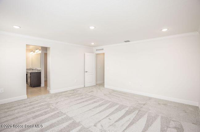 Pre-Construction. To Be Built. Fall in love with the Carrington at Malabar Springs, the premier new gated community in Palm Bay. This residence represents the height of flexible modern living, blending resort-style amenities with a floor plan designed for ultimate privacy and convenience.The Carrington stands out with its rare dual primary suites, with one located on each level. This layout is the perfect solution for multi-generational living or a high-end guest retreat. Each suite serves as a private sanctuary featuring dual vanities and glass-enclosed walk-in showers with custom ceramic tile. At the heart of the home, the open-concept great room and kitchen are finished with elegant Shaker cabinetry, sleek granite countertops, and stainless steel appliances. Natural light pours in through the sliding doors, leading you out to a screened-in lanai that provides a private front-row seat to the Florida breeze.