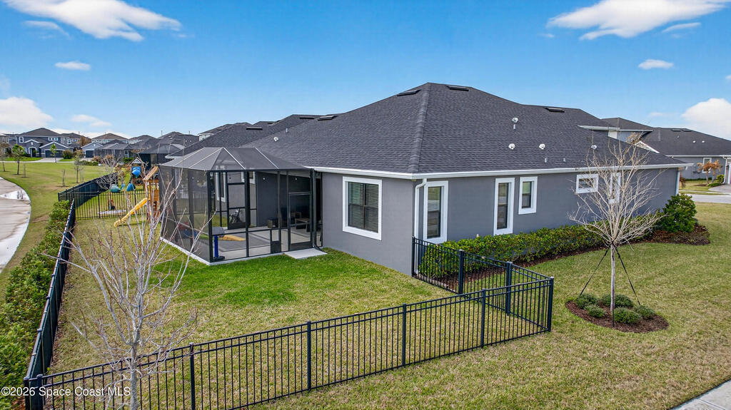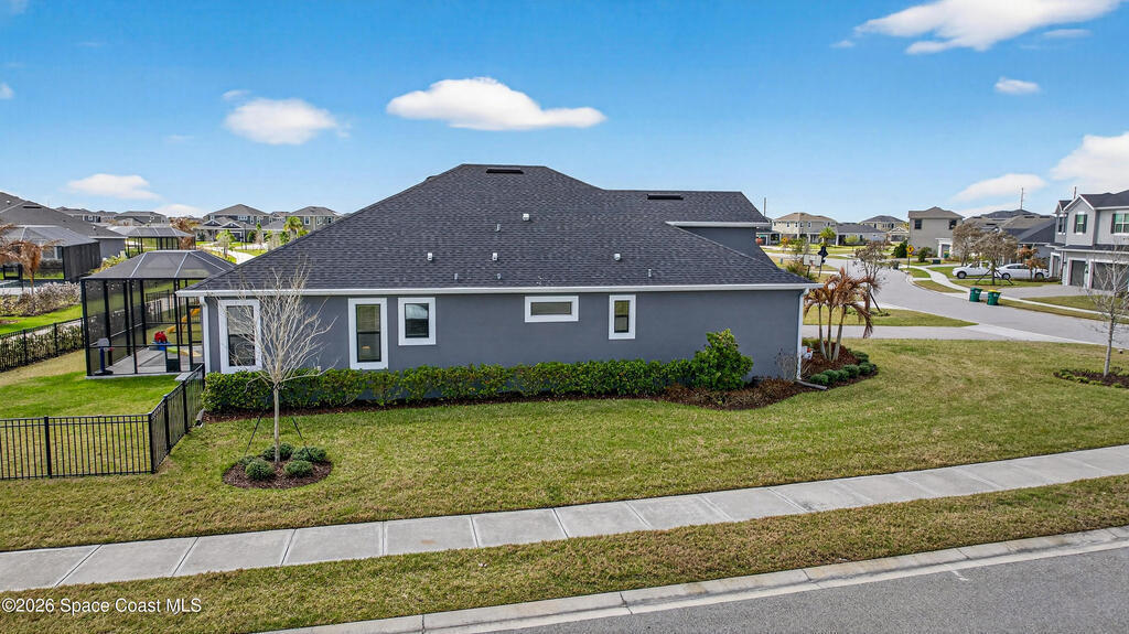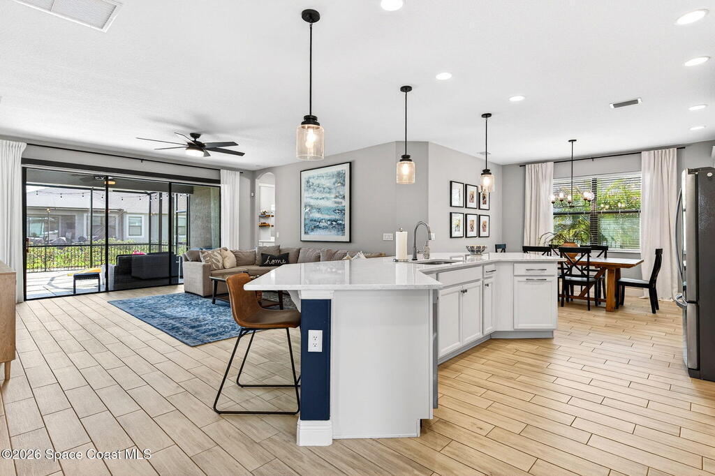 PRACTICAL ELEGANCE - this home is both Stunning and Livable, a Sophisticated Balance of High-End Aesthetics with Functional, Everyday Use. Tailored for the luxury-seeking homeowner who prioritizes warmth & comfort. Enjoy a curated open floor plan featuring 10' ceilings, abundant natural light and a seamless flow designed for family living. The Gourmet Kitchen is a culinary retreat with quartz countertops, white shaker cabinets, upgraded gas stove, wine cabinet, spacious cafe eating area & an expansive island which serves as the heart of home entertaining. Triple Sliding Doors in the Family Room bring indoor comfort and outdoor living together. Features include a Home Management Center, Hurricane Protection, Paver Driveway, Oversized Garage w/ bump-out, Huge Laundry room w/workspace & storage, Premium Corner Lot & more. Relax in the Extended, Screened in Patio and let the Kids & Pets romp in the Fully Fenced-In Yard. HOA-managed landscaping allows for easy, low maintenance living.