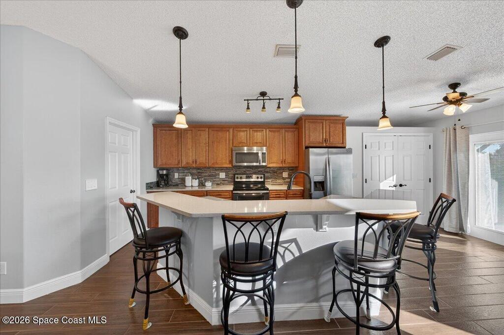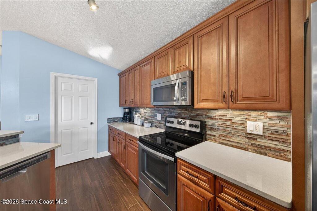 Located in the highly desirable Auburn Lakes community in East Viera, this beautifully maintained 3-bedroom, 2-bath home backs to a peaceful preserve, offering privacy and natural views rarely found in the area. The light, bright, open floor plan features an updated kitchen with quartz countertops and stainless steel appliances, while wood-look tile flooring throughout adds warmth, durability, and easy maintenance. This move-in ready East Viera home has been meticulously cared for inside and out. Auburn Lakes residents enjoy a community pool along with scenic walking and biking trails. Ideally located near top-rated Viera schools, shopping, dining, and medical facilities, with convenient access to I-95 and US-1. Just a short drive to the Space Coast beaches, making this East Viera home a great combination of comfort, location, and lifestyle.