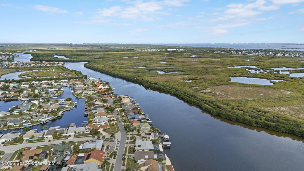 Priced to sell! Open-water pool home on navigable Sykes Creek in the heart of Merritt Island. Enjoy wide water views with direct boating access to the Banana River and Intracoastal. The interior has been refreshed with a remodeled kitchen, new appliances, updated trim, and fresh paint throughout. The layout flows seamlessly to the screened pool and pavered backyard, creating the perfect space for relaxing or entertaining.Major updates are already complete, including a 2024 roof, 2019 HVAC, and 2019 water heater. The home features three bedrooms, including a guest suite with its own full bath and direct pool access. No HOA and a rare opportunity to own open water frontage on Sykes Creek.