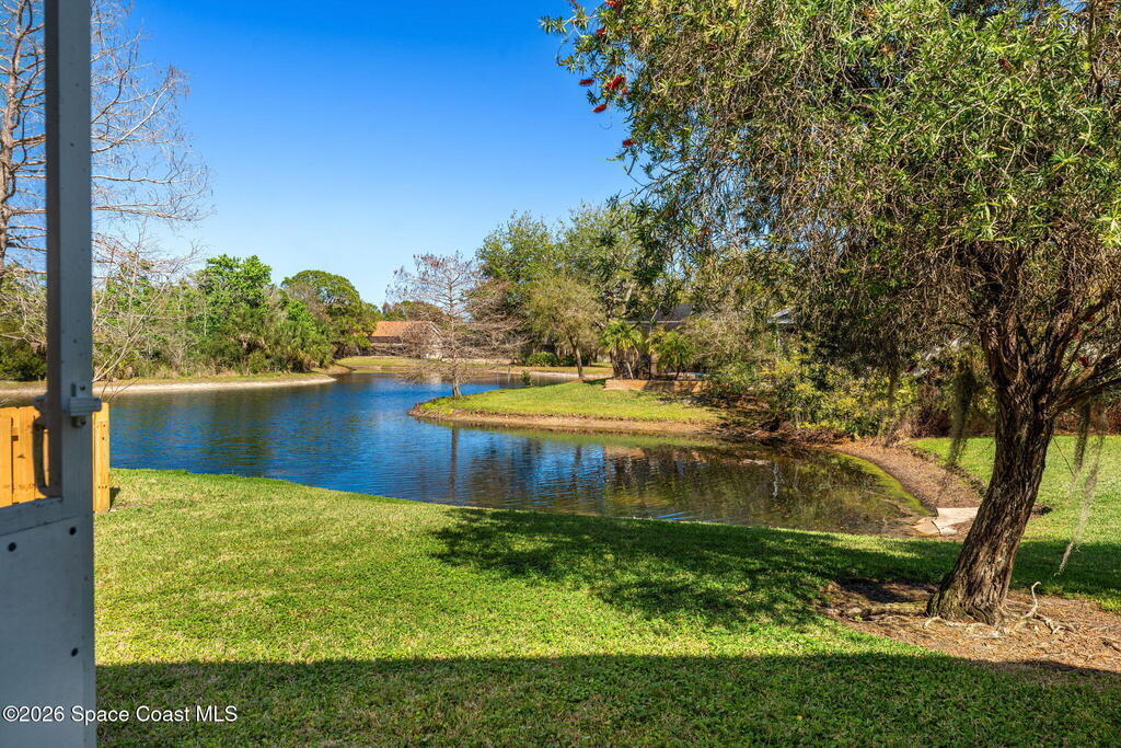 Enjoy a sparkling lake and mature trees in this exclusive gated community. Entire neighborhood of only 30 homes, all developed and built by one of Brevard's finest builders, provides a quiet and serine residence. This .5 acre corner lot boasts a split 3 bedroom, 2 bathroom, separate laundry room, 3 car garage and more. Newer roof (December 2024), new paint (2025), all new carpeting and a generously sized kitchen. Perfect for living and entertaining.