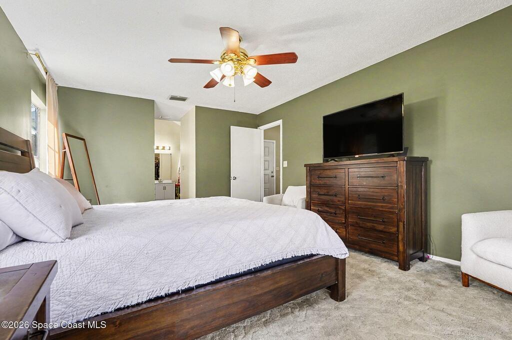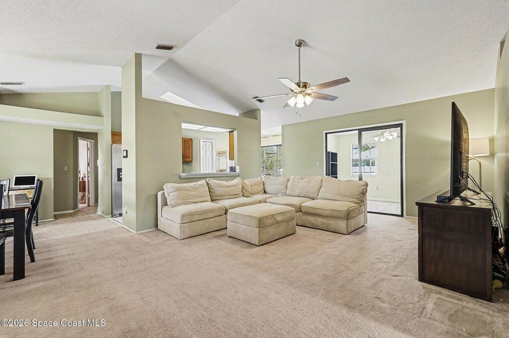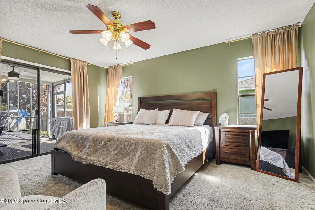 Well-maintained 4-bedroom pool home featuring an open family room with vaulted ceilings and ceiling fans, creating a bright and comfortable living space. This home features a 9.315 kW roof-mounted solar panel system to keep electricity bills low. The home offers a functional split-bedroom floor plan with spacious bedrooms and large closets throughout. The primary suite accommodates a king-size bed and includes two walk-in closets, an updated vanity, and a view of the pool area. The kitchen features, a stainless-steel refrigerator, and a newer Whirlpool dishwasher. Most other appliances are approximately three years old. Enjoy outdoor living with a large screened porch overlooking the fenced backyard and saltwater pool, recently converted with a newer filter and well-maintained pump. Additional updates include newer bathroom vanities and light fixtures, a renovated bonus room, newer gutters and downspouts.