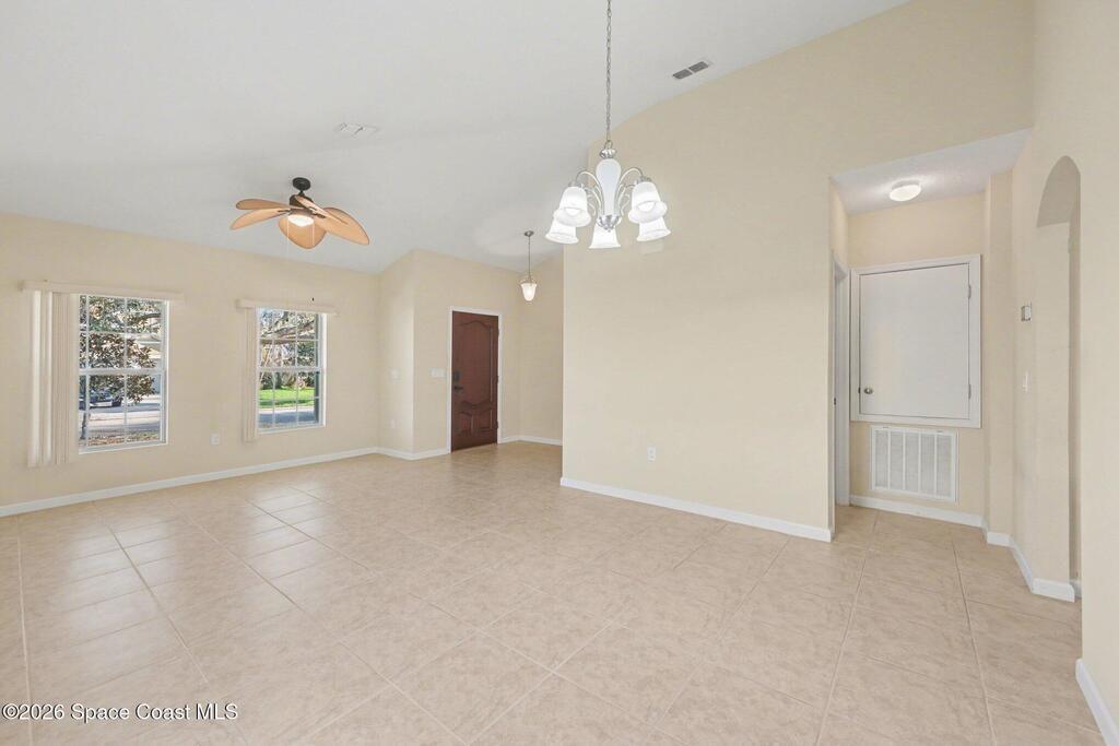 This immaculately kept home is move-in ready in beautiful Titusville! Home features an open floor plan with vaulted ceilings, 3 spacious bedrooms with a versatile sitting room, perfect for a home office, nursery, or reading nook adjoining the primary suite.The primary bathroom includes double sinks and a beautifully remodeled walk-in shower. Neutral tile flooring flows throughout the main living areas with cozy carpet in the bedrooms, all finished in tasteful, matching neutral tones.The bright, open kitchen overlooks the family room and offers stainless steel appliances, granite countertops, a breakfast bar, and a large pantry. From the family room, step out to a trussed, screened porch with peaceful views of the retention/preservation area with no backyard neighbors! Newer AC and many upgrades are waiting for you to make this your new home!
