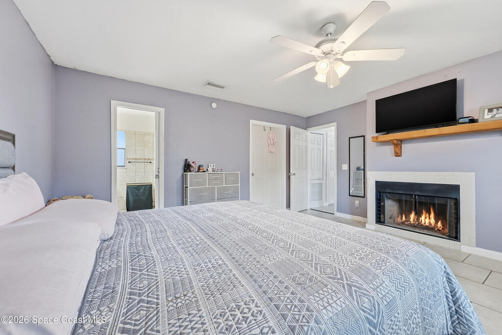 Bright and cheerful home full of unique charm and inviting character. The main living area features vaulted ceilings and a striking floor to ceiling stone wood burning fireplace, creating a cozy yet spacious feel. Recent updates include brand new kitchen appliances, a brand new water heater, and new carpet in the bedrooms. Sliding glass doors open to a screened patio overlooking a large backyard. The primary suite offers its own fireplace, walk in closet, and double vanity in the en suite bath. A charming home with thoughtful updates and plenty of personality.