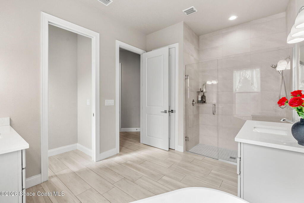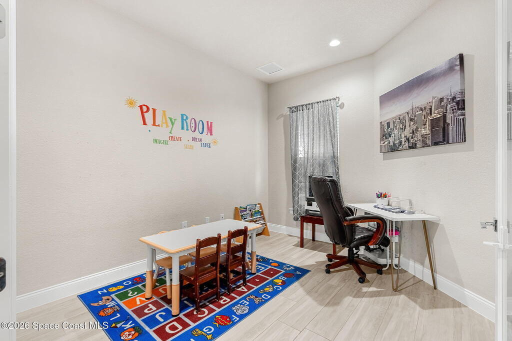 Tucked within a sought-after, builder-exclusive community, this meticulously crafted custom Ventura model immediately sets the tone for something special. From the moment you step inside, the home unfolds with intention--an airy, light-filled design where elegance and comfort blend effortlessly. Soaring 10-foot ceilings create a sense of openness throughout, while tray ceilings in both the grand living room and the primary suite add architectural depth and quiet sophistication. Every room feels thoughtfully finished, framed by 51/4-inch baseboards that subtly highlight the home's craftsmanship and attention to detail. The 4th bedroom is currently utilized as a home office, offering the ideal setup for remote work or study.