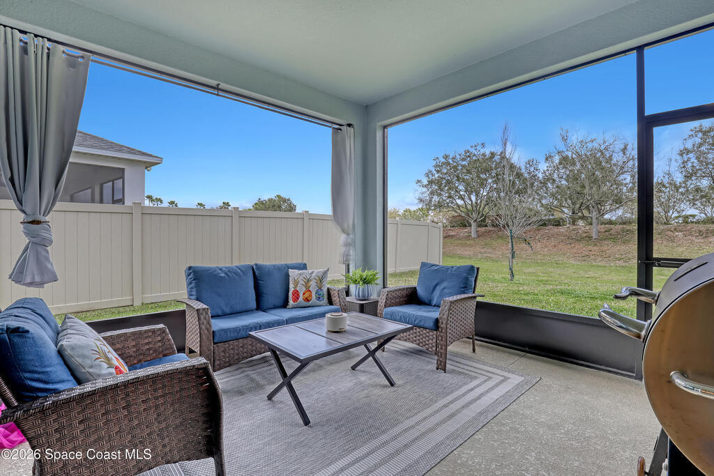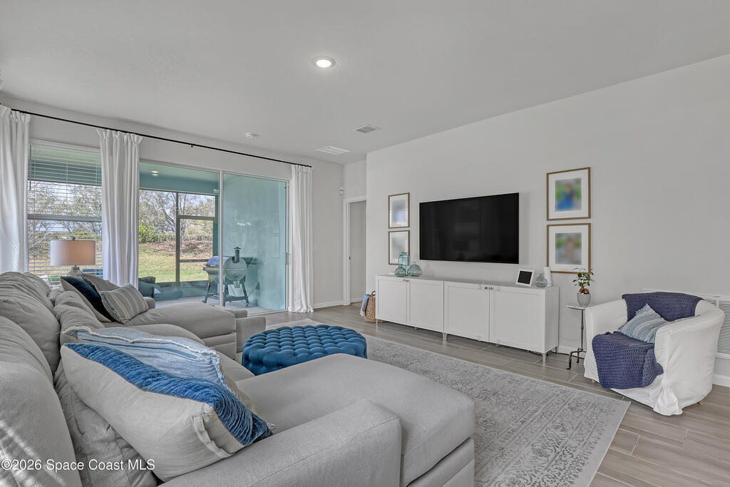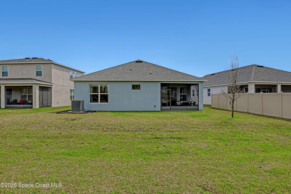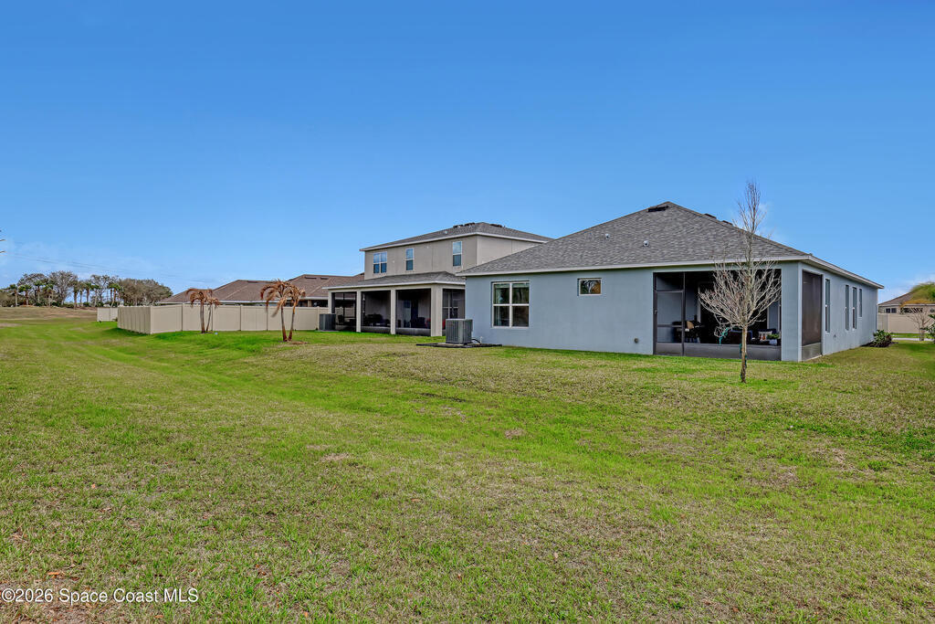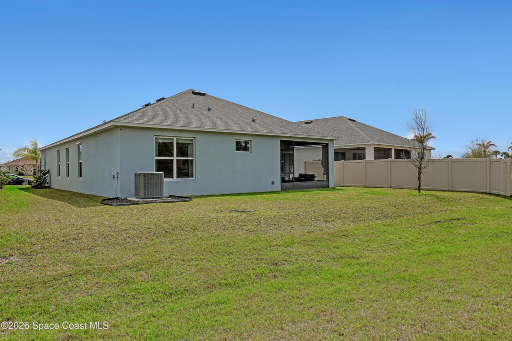 Why wait to build? Move right into this like-new 2023 home in a gated community with over 2,100 sq ft, a screened lanai, and resort-style amenities.Built in 2023 by Landsea Homes, this spacious 4-bedroom, 2-bath residence features a bright open-concept layout with a large kitchen overlooking the dining and living areas--perfect for entertaining or everyday living. Tile flooring runs throughout the main living spaces, while the bedrooms offer comfortable carpeting. Enjoy relaxing evenings on the oversized screened-in lanai overlooking the backyard. Located in a gated South Palm Bay community with HOA amenities that include a community pool and clubhouse. Conveniently located near the interstate, shopping, and dining. Clean, well maintained, and completely move-in ready.