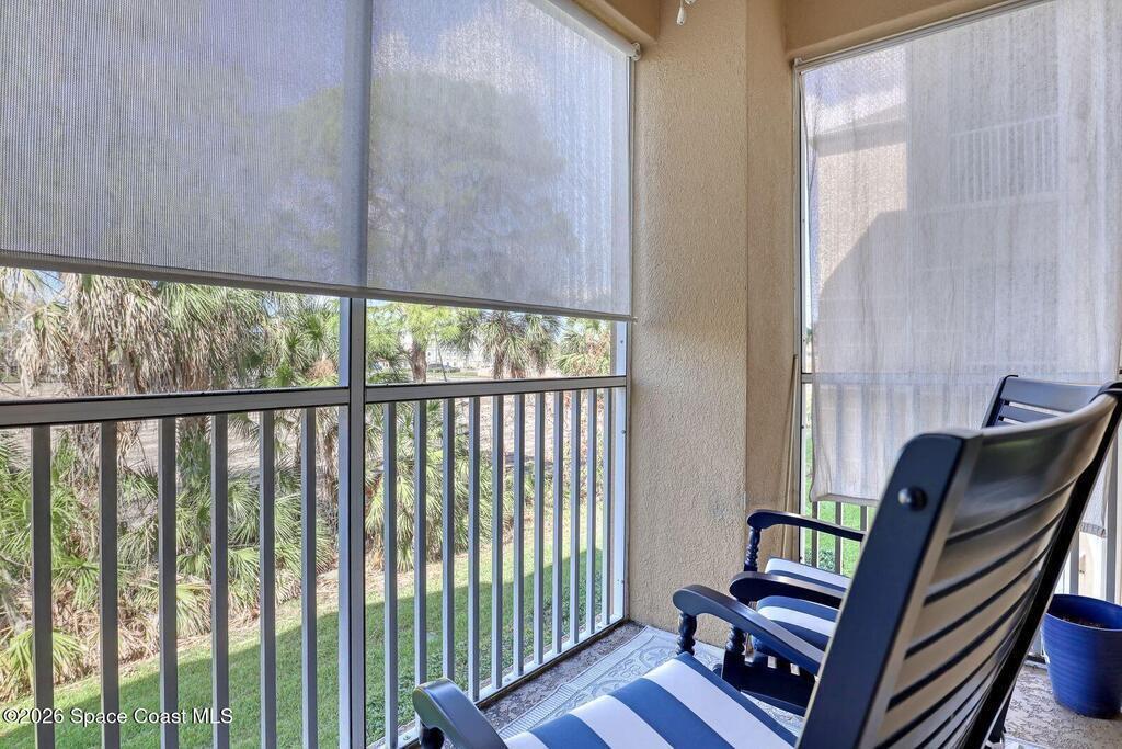 A GORGEOUS, TOTALLY UPDATED END UNIT CONDO OFFERING STYLE, COMFORT & PRIVACY! This light-filled home features an open layout, modern finishes, and a beautifully redesigned kitchen with stainless appliances, sleek white cabinetry w/crown molding and premium surfaces. Enjoy in unit laundry, new HVAC and a private garage w/new motor! The spacious living area flows to a balcony perfect for relaxing! The primary suite includes a refreshed bath, generous closet space, while the split plan provides ideal guest privacy. Enjoy new flooring, updated lighting, fresh paint, and meticulous care throughout. High-end furnishings are negotiable, creating a turnkey opportunity! This well-kept community offers a huge sparkling pool, plenty of outdoor space to lounge, gym, and clubhouse! Close to Golfing, Shopping, Restaurants, Entertainment, Fishing, Boating, Beaches, KSC, Port Canaveral Cruises, Hospitals, and only 40 min. to theme parks and OIA. Move-in ready and truly stunning--an exceptional find!