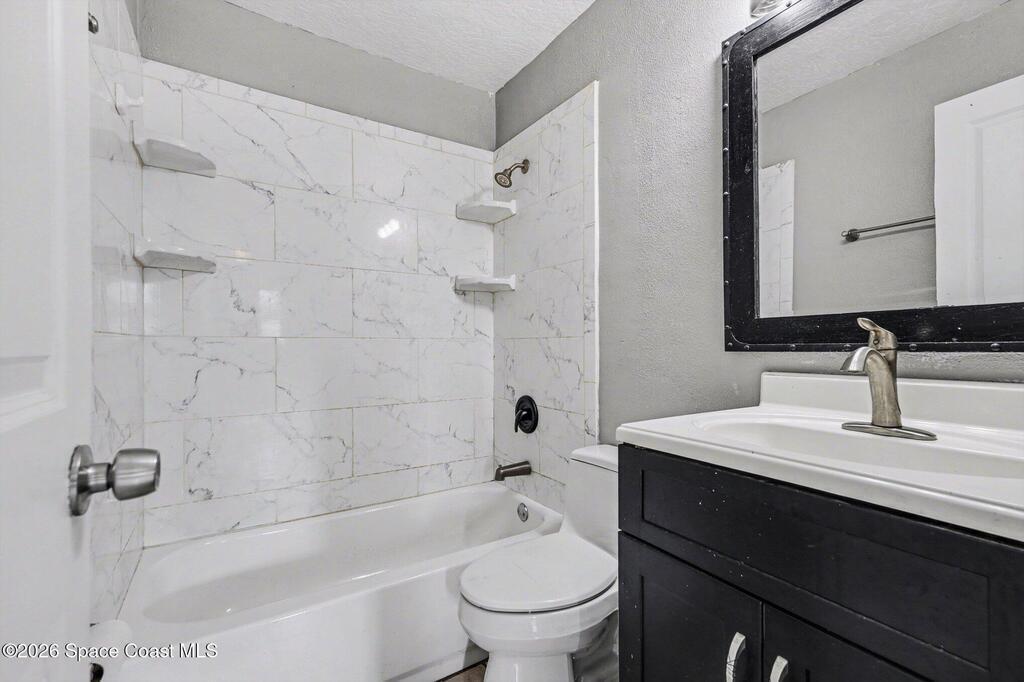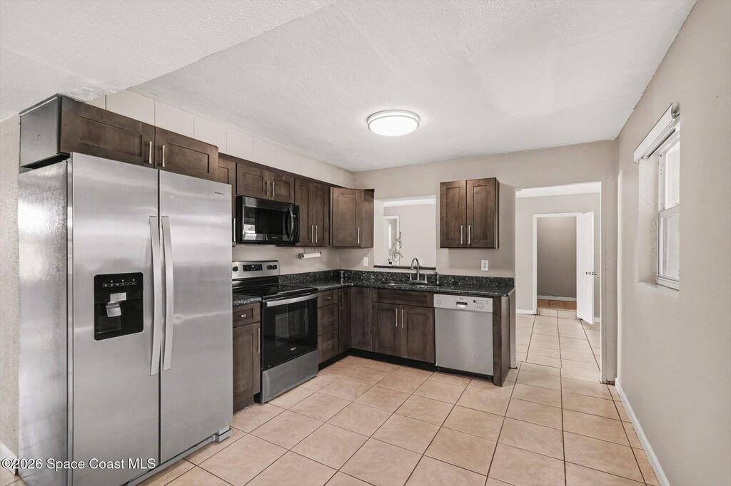 Fantastic opportunity to own a remodeled concrete block home in South Merritt Island. Open floor plan and tile floors throughout. Enter though screen enclosed front porch. Large living room opens to remodeled kitchen with wood cabinetry, granite counters and stainless appliances Refrigerator 2024. Room for a cafe table or butcherblock island. Home can function as a 4 bed/2 bath or 3 bed with extra-large family room (used to have a pool table!). Both bathrooms remodeled. Indoor laundry, washer and dryer included. 2024 HWH. Sliders exit to screen enclosed porch overlooking fully fenced yard. Storage shed on concrete slab. Double gate on west side with large side yard for boat storage. BRAND NEW Interior Electrical panel and Exterior 150 amp Service Panel. AC 2020 on an FPL lease and maintenance program. Excellent Roof 2017. 1 car carport. Peaceful neighborhood close to shops, restaurants, A rated Tropical Elementary, and Jefferson Middle Schools.