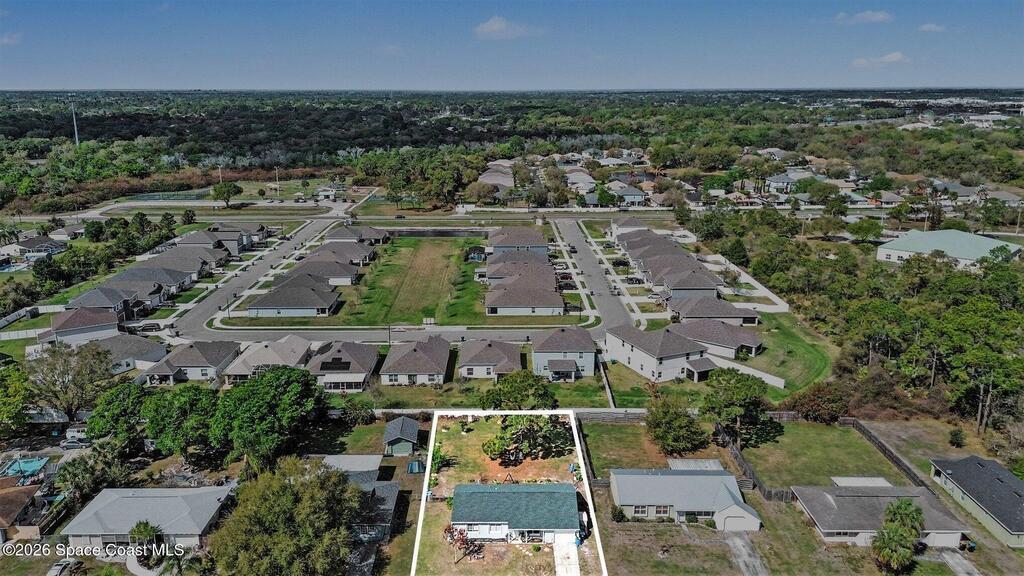 Charming 3/2 in NE Palm Bay on an oversized 0.28-acre fully fenced lot bursting with fruit trees, lush Florida flora, and a stunning mature pine. Big-ticket items are done -- brand new roof in 2024, HVAC and water heater replaced within the last 3 years, and 150-amp electric service mean lower near-term costs whether you're moving in or renting it out. The practical 1,176 sf layout appeals to a wide range of buyers and tenants alike. Positioned near Palm Bay Rd and I-95 for effortless commuting to area employers, plus just a 20-minute drive to the beautiful Indialantic beaches. A rare blend of outdoor space, key updates, and unbeatable location -- don't miss it!