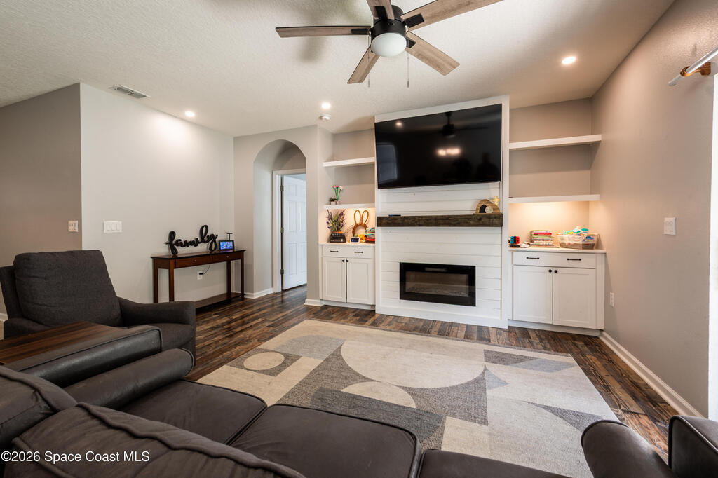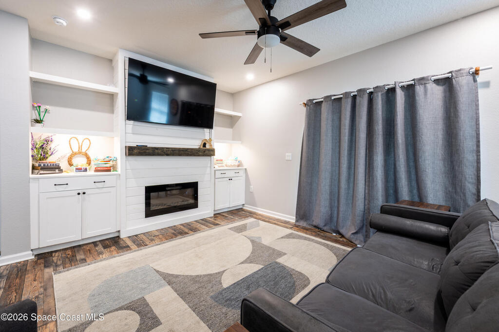 BEAUTIFUL 4 bedroom 2 bathroom home with an open floor plan and many upgrades including laminate flooring, kitchen backsplash, and recessed lighting throughout. The living room features a custom shiplap accent wall with an electric fireplace and built in cabinets. Step outside the back door to enjoy a large fenced backyard with a relaxing fire pit area. The home backs up to a conservation area, so nothing will ever be built behind it. Located on a quiet cul-de-sac street with low traffic volume. ALL of this while being less than 2 minutes from I95 access for all of your traveling needs. Schedule your showing today!