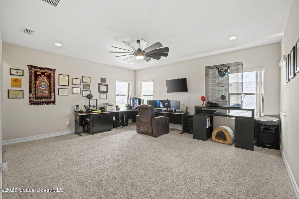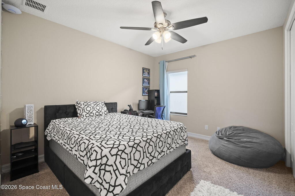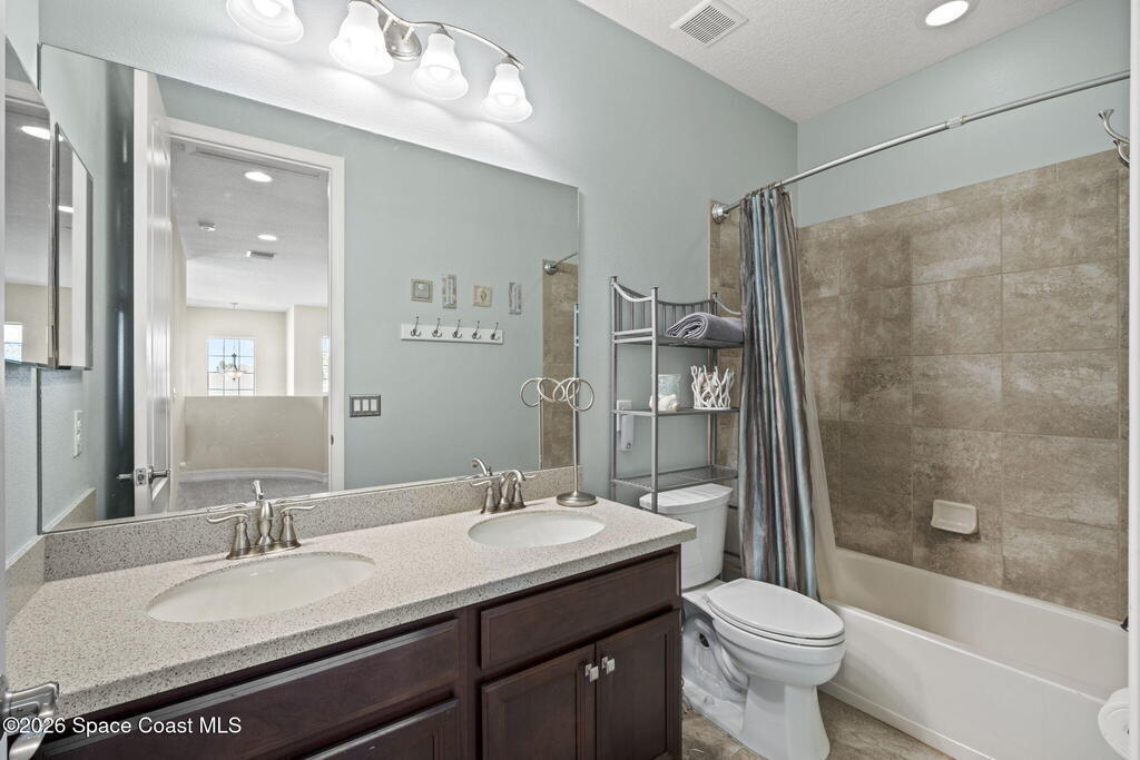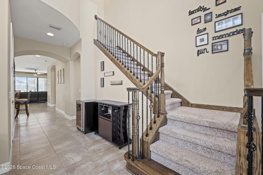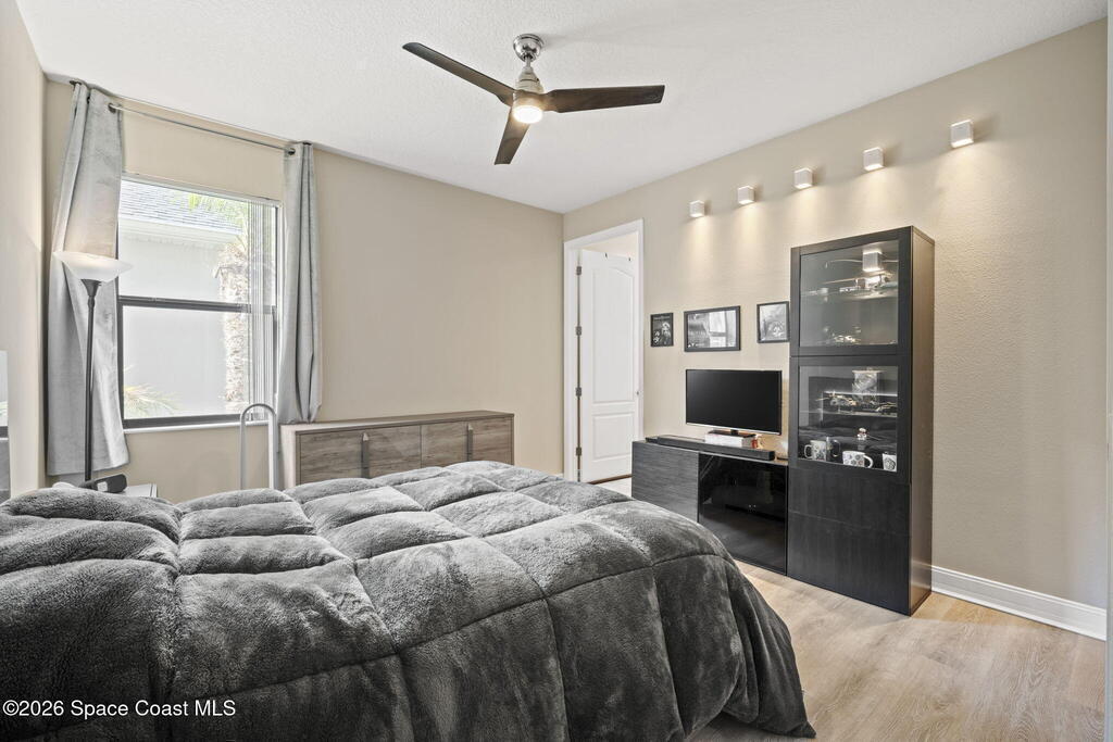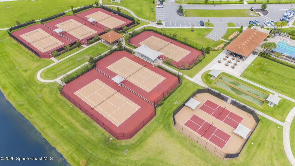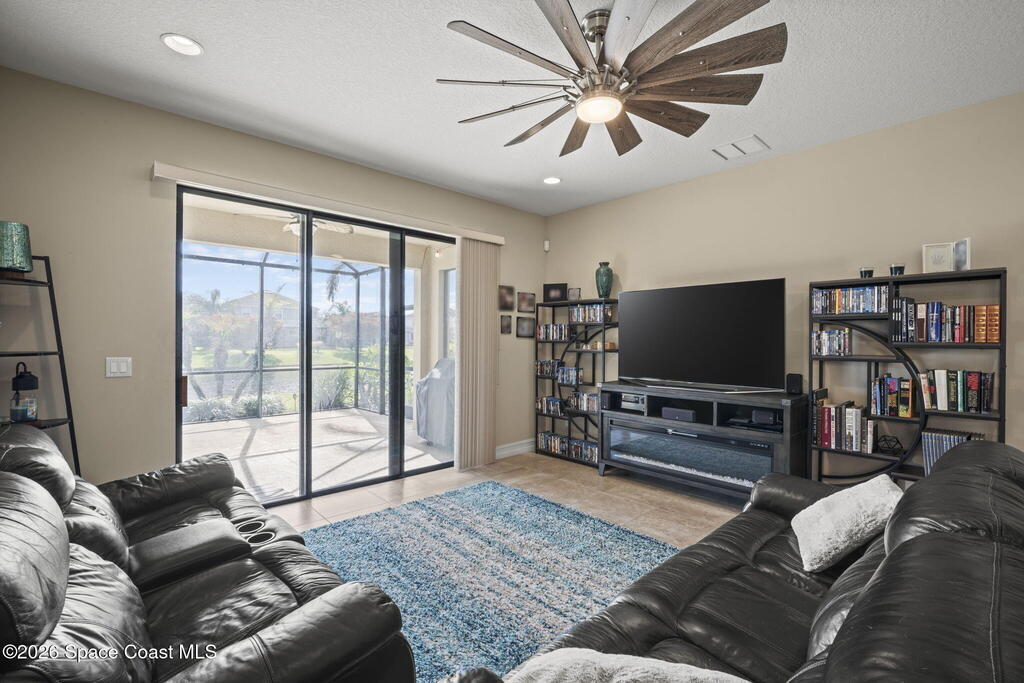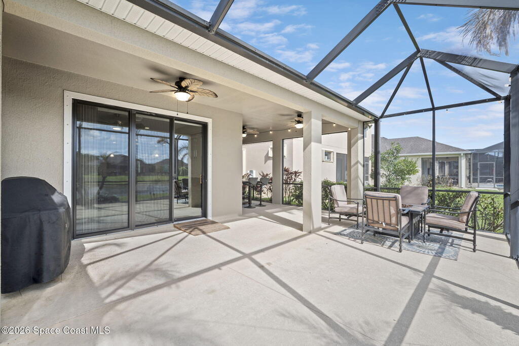 Welcome to this stunning two-story lakefront home in the highly desirable Strom Park community of Viera. Offering over 3,100 SQFT of living space under air, this beautiful lakefront residence features 4 spacious bedrooms and 3.5 bathrooms, designed with both comfort and elegance in mind. Both Master and guest suite are on the first floor! The gourmet kitchen is perfect for entertaining, with generous counter space, stainless steel appliances with gas stove, and an open layout that flows seamlessly into the living areas. Step outside to your extended covered, screened-in porch and enjoy peaceful lake views, ideal for morning coffee or relaxing evenings. Located just minutes from The Avenues in Viera, Costco, popular dining, local dog parks, shopping, schools, and hospital, this home combines luxury living with convenience. Most locations are all golf cart accessible! Also, there are impact rated windows at the front of the home and 2nd floor! Roof, AC, and water heater are 9yrs old.