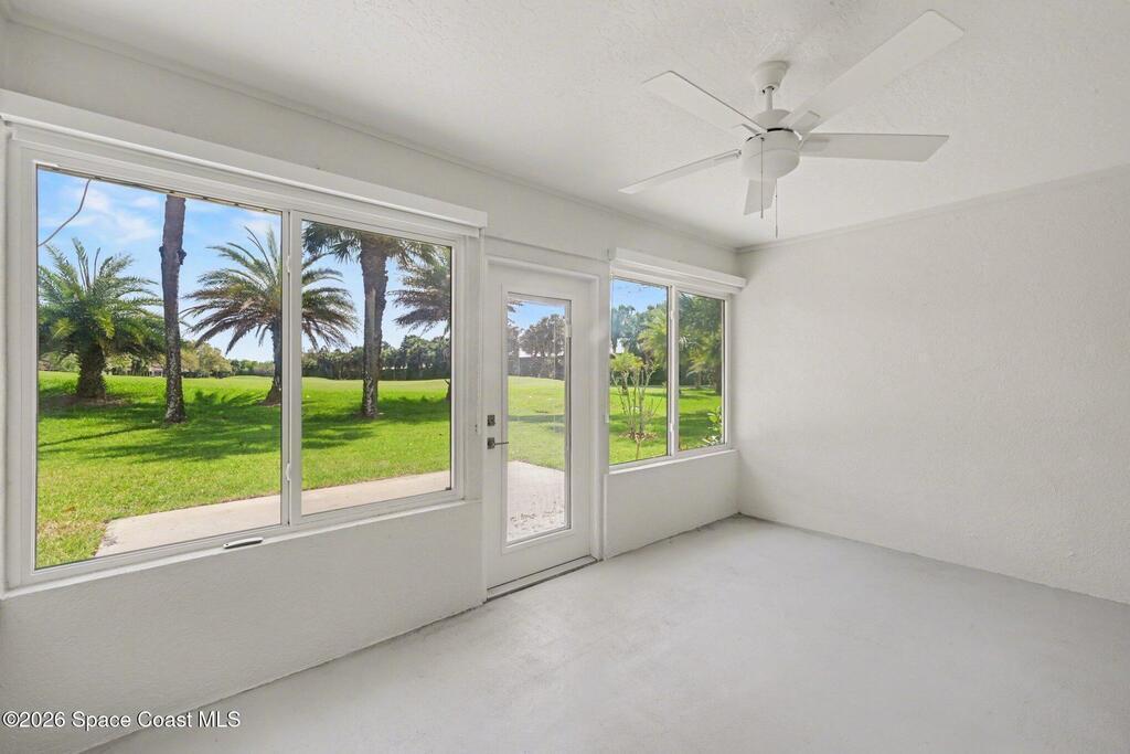 Located in a resort-style country club community, this Hartford II model offers stunning golf course and water views for an exceptional Florida lifestyle. This 4-bedroom, 2.5-bath floor plan features impact windows and doors, tile flooring, and an inviting kitchen with attractive cabinetry. Light and bright, the open layout is ideal for both everyday living and entertaining, with serene vistas from the main living areas, primary suite, covered, enclosed porch and outdoor patio with awning. Home to over 600 military veterans, Indian River Colony Club is a private 55+ country club community known for its unique blend of camaraderie, comfort, and care. Residents enjoy an extensive home maintenance program plus exceptional amenities, including an 18-hole, par-72 golf course, gourmet dining with an executive chef, the casual 19th Hole restaurant and bar, fitness center, heated pool, tennis, croquet, bocce ball, shuffleboard, and more.