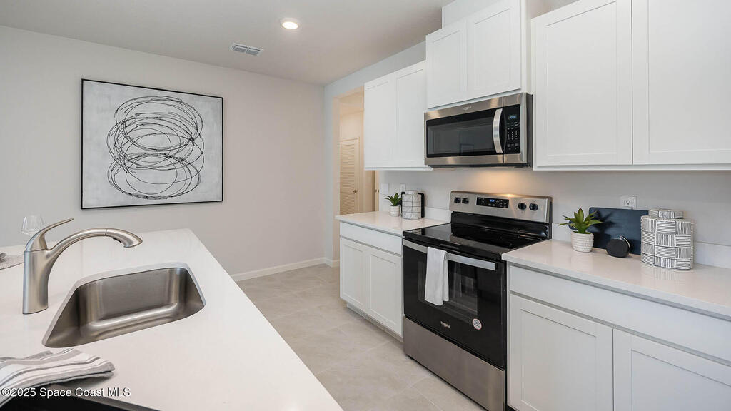 Introducing the stunning Cali model home at Cypress Bay West, Palm Bay, Florida--where luxury meets convenience and comfort in every square foot! This 4-bedroom, 2-bathroom home spans 1,828 square feet, blending elegance with modern functionality. Quartz countertops and luxury vinyl plank floors in the main living and wet areas create a high-end, timeless feel. Step into the bright foyer that flows into the open-concept living, dining, and kitchen areas--perfect for entertaining. Large windows fill the space with natural light and offer beautiful views. The kitchen features quartz counters, stainless-steel appliances, a walk-in pantry, a large island with breakfast bar, and a sleek undermount kitchen sink. The spacious primary suite includes a private ensuite with dual sinks, a separate shower, and a walk-in closet. Three additional bedrooms share a well-appointed bathroom, plus a dedicated laundry space near all bedrooms.