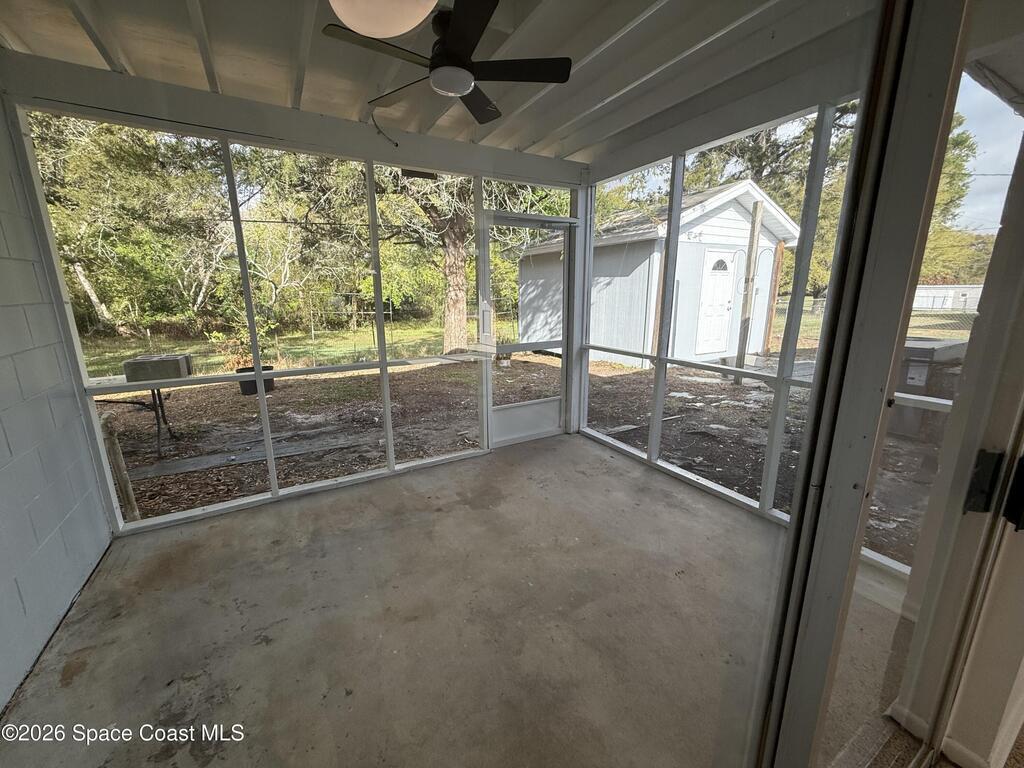 Spacious 4 bedroom, 2 bathroom home with garage, featuring beautifully renovated bathrooms and a fully updated kitchen with new plumbing and stainless steel appliances, including a microwave. The interior and exterior have been freshly painted, giving the home a clean, move-in-ready feel. Enjoy a large backyard (fenced along the back and one side) plus a powered shed with lighting, ideal for storage or projects. The screened in back porch includes a ceiling fan and a convenient pass through window to the kitchen. Brand new blinds are installed on all windows, and a dedicated laundry room is located next to the garage. Prime location near US1, I95, the beaches, Kennedy Space Center, Orlando, and more. Pets considered on a case by case basis with a $275 non-refundable fee.Application fee: $75 per adultLease fee: $100Deposit: starts at $2,295Apply online at BrevardPropertyManagement.com NOT on Zillow.
