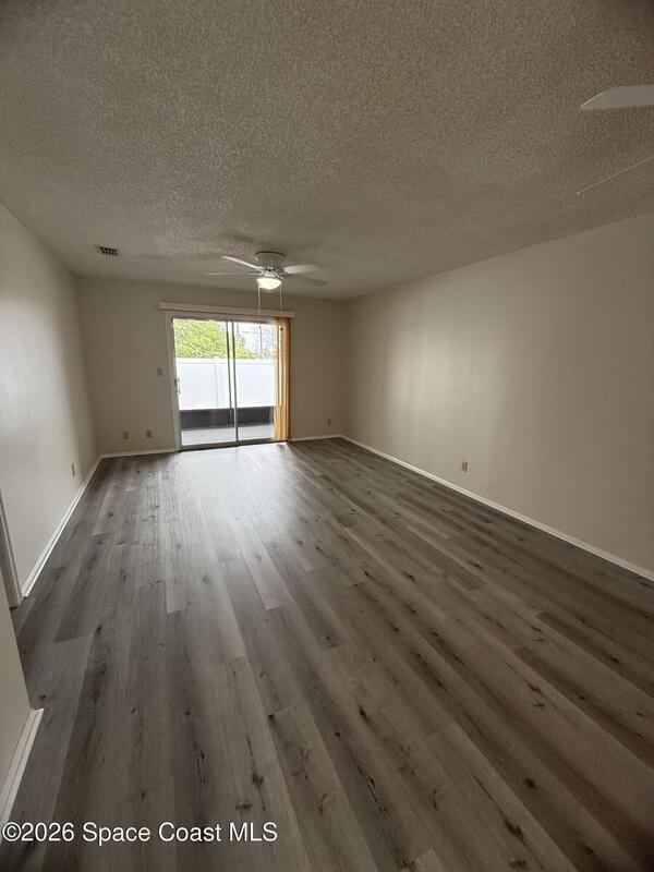Clean & ready for immediate occupancy. Owner may consider a cat. Fresh neutral interior color scheme. Open floor plan of combination living/dining room & galley kitchen with breakfast nook. No carpet - luxury vinyl throughout! Master bedroom features walk in closet & private bathroom (tub/shower.) Guest bathroom has step in shower. Blinds on all windows. Screened patio. Laundry room complete with washer/dryer & storage shelves. Rent includes basic cable, lawn care, exterior pest control & trash service - HOA fee paid by owner. Convenient location to public transportation & shopping with easy access to Indian River, historic downtown, Titus Landings, bike trails. Only 10 minute drive to Playalinda Beach! Quick drive to cruise port, beaches, Kennedy Space Center & airports. Renter's insurance is required.