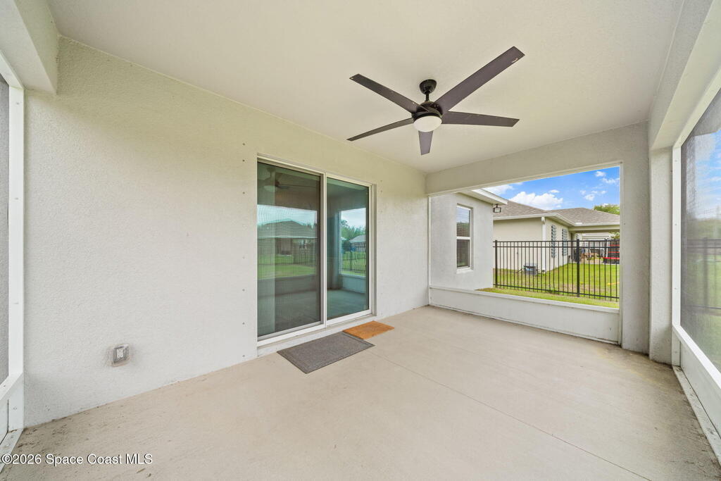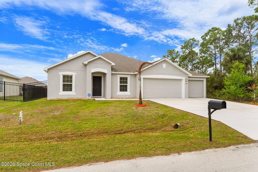 DON'T WAIT FOR NEW CONSTRUCTION! 2021 built, 3/2 WITH FLEX ROOM AND 3 CAR GARAGE features a desirable open-concept, split-bedroom floor plan designed for comfort and privacy. Walking in to the left, you have a office space/extra bedroom. Two spacious guest rooms that can comfortably fit queen size beds with full bed sets. The Family Room offers plenty of room for guests and flows seamlessly into the kitchen, which includes a breakfast bar, ample counter space, 42-inch cabinets, and Whirlpool appliances. The Owner's Suite features a large walk-in closet, tiled shower, dual sinks with generous counter space. Enjoy your spacious lanai in the back which is fully screened. The backyard is enclosed with a sleek black fence, providing added privacy and space for pets or outdoor enjoyment. Again not to mention 3 CAR GARAGE to fit all your toys, storage and equipment. Don't miss out on this opportunity today.