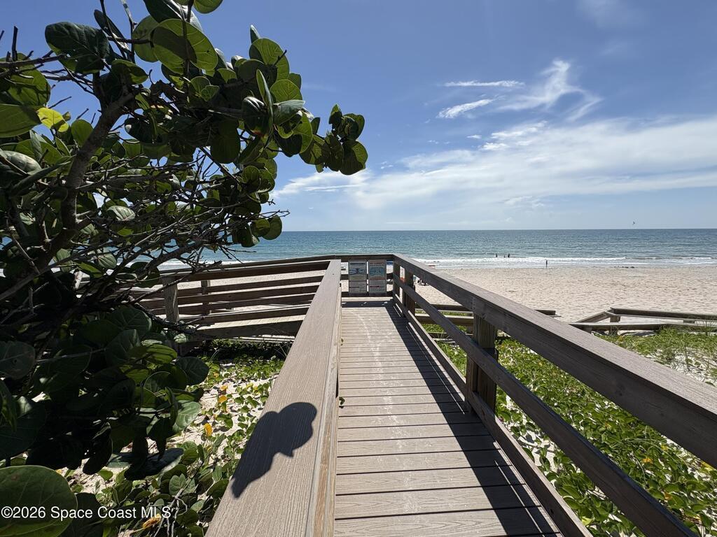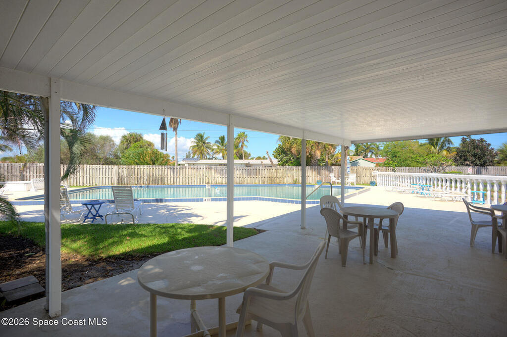Come enjoy a piece of paradise! This furnished condo is available May 3, 2026 - January 3, 2027. Terrific getaway, this condo is clean, bright, easy and a ground floor unit! Community pool at the west end of the street is about the same distance away as the ocean, pool &/or beach - you choose! Millennium Park directly across the street makes going to the beach effortless. All tile flooring makes cleaning easy, walk in shower at primary bath and tub/shower in bath 2. Both bedrooms are set up as suites with the bathrooms inside the rooms. The rear porch is enclosed, a cute Florida room to extend your living area. Your 2 parking spots are directly outside the door for your convenience. There is a washer & dryer in the building which is coin operated (never busy). Terrific location just north of Eau Gallie Blvd, heart of Brevard Island side with grocers, shops, entertainment & water all around. Come check it out.