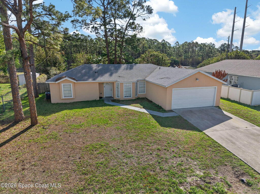 Move-in ready home located in a growing Palm Bay neighborhood with convenient access to shopping, dining, and major roadways. This property features a bright open concept layout with spacious living areas and abundant natural light, creating a comfortable and welcoming atmosphere throughout the home.The kitchen offers ample cabinet and counter space and flows seamlessly into the main living and dining areas perfect for everyday living and entertaining. Generously sized bedrooms provide flexibility for families, guests, or a home office, while the primary suite offers a comfortable retreat at the end of the day.Step outside to a private backyard with plenty of space to relax, entertain, or create your own outdoor oasis. The home also includes a garage and additional driveway parking.Located in one of Palm Bay's steadily expanding areas, this property presents an excellent opportunity for homeowners or investors looking for value and convenience. Schedule your private showing today.