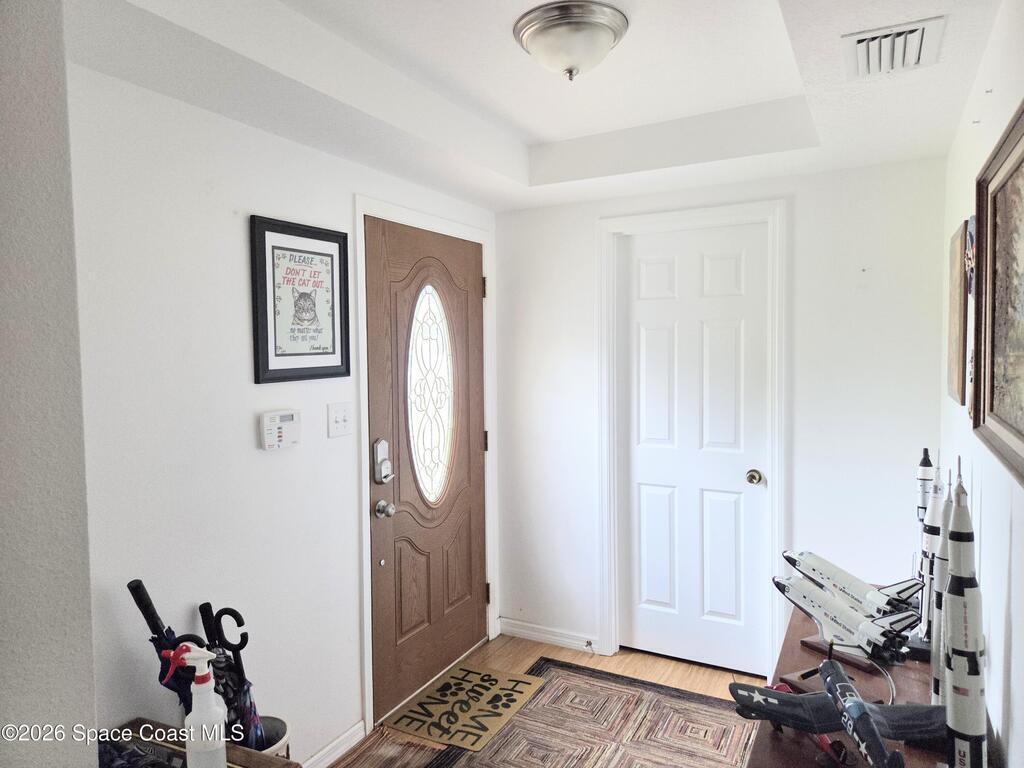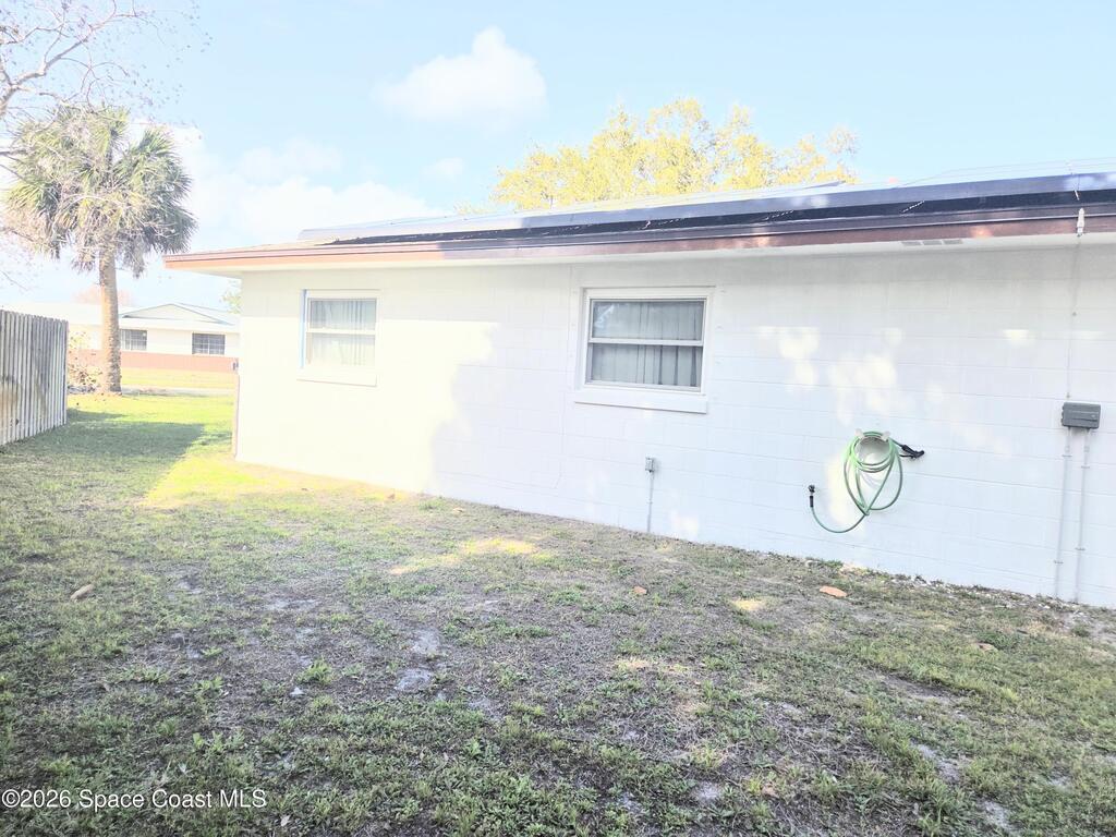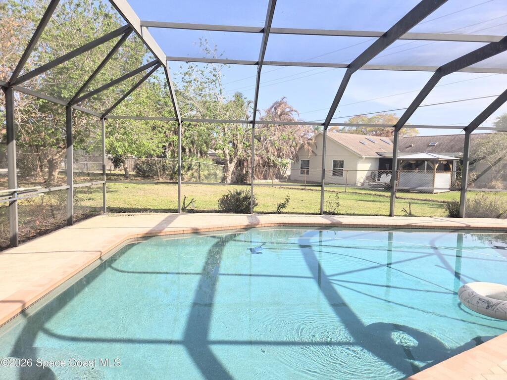 Endless amounts of storage in this energy efficient 3 bedroom 2 bath completely renovated pool home in Villa De Palmas subdivision.Featuring solar panels already paid over 35k to have less than $50 electric bill. Extra large laundry room with storage cabinets.His and Hers walk in closets with Cedar.Enormous brick paver driveway.. Wind resistant windows. New roof, recently replaced HVAC in 2022.Recently replaced pool enclosure screen. Water filter system, security system. New garage door in 2022.Handicap accessible bathrooms.Largest yard in neighborhood. Large shade trees,Very relaxed HOA only $100 yearly for entrance way and sidewalks. Conveniently located near shopping, the brand new hospital, KSC, Blue Origin, Spacex, Port Canaveral cruise terminal. SFB, Melbourne, the beaches, river.. 1 hour to Orlando International Airport and 30 minutes to Melbourne Airport. 1 hour Orlando attractions.