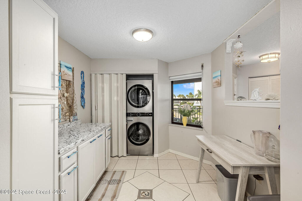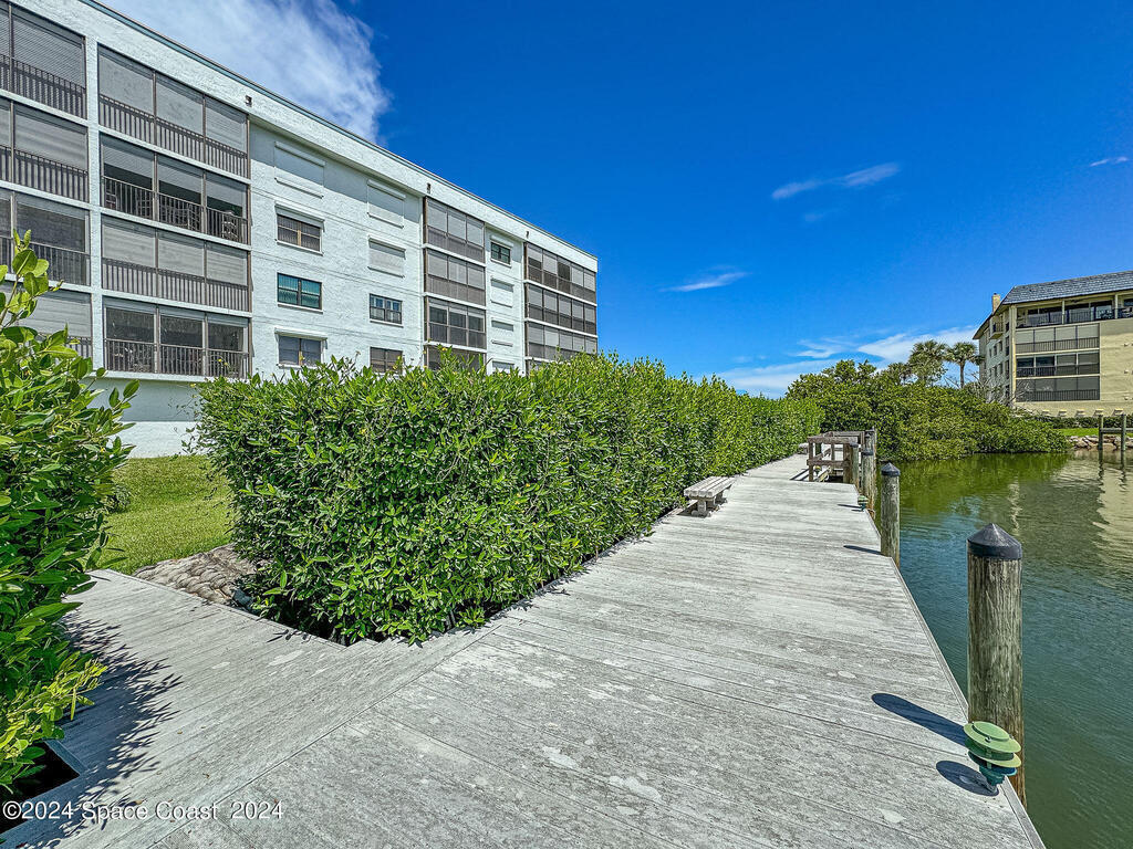 Experience Florida living at its finest in this beautiful end-unit condo with breathtaking views of the Banana River in a coveted waterfront community of Rock Pointe. Watch the Cocoa Beach Christmas Boat Parade from your very own porch, which cantilevers out for completely unobstructed views. Inside, you'll find laminate flooring throughout the living areas, crisp neutral kitchen cabinets, and newer appliances for a modern touch in the kitchen. The owner's suite features a spacious walk-in closet, dual sinks, a standing shower, and a garden tub, perfect for relaxing while enjoying waterfront views. Wake up to serene river views and step out onto the porch via private sliding door access. The revamped laundry room adds extra convenience. Owners just added brand new Hurricane shutters for peace of mind. Don't miss this slice of paradise with unbeatable water views!