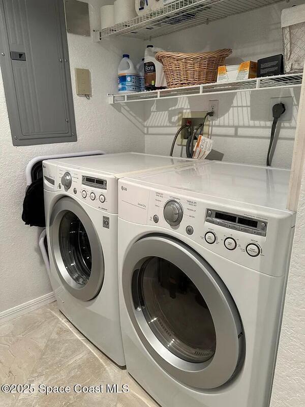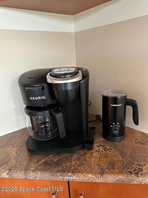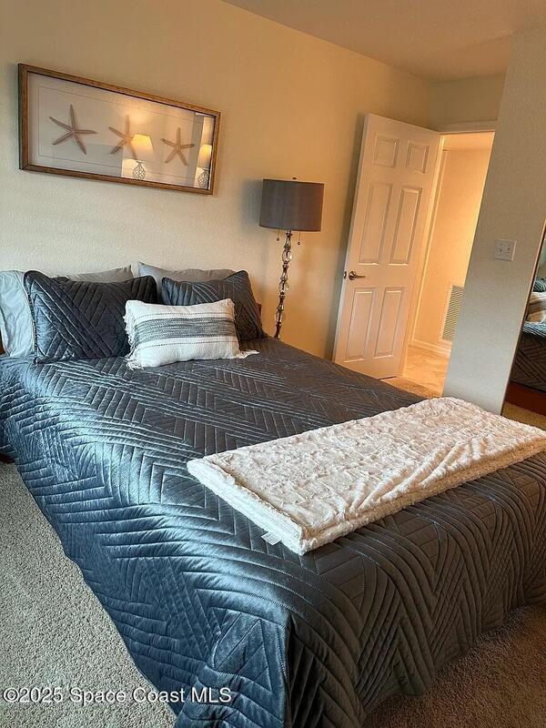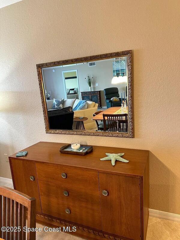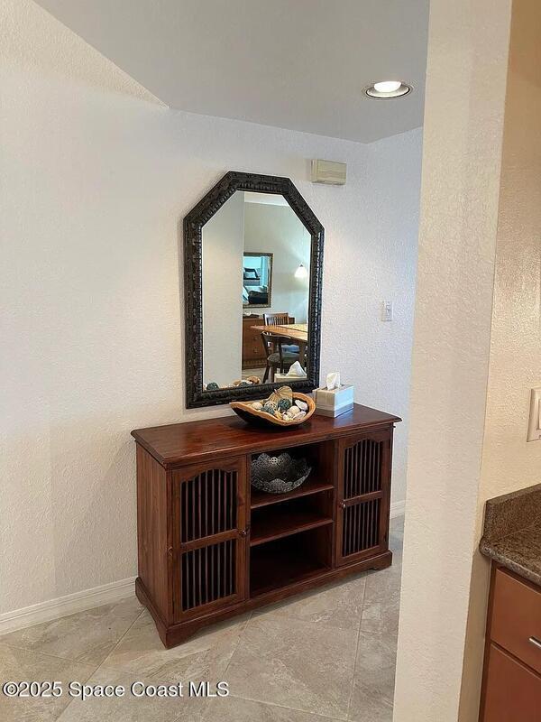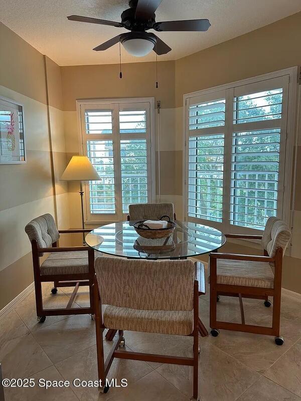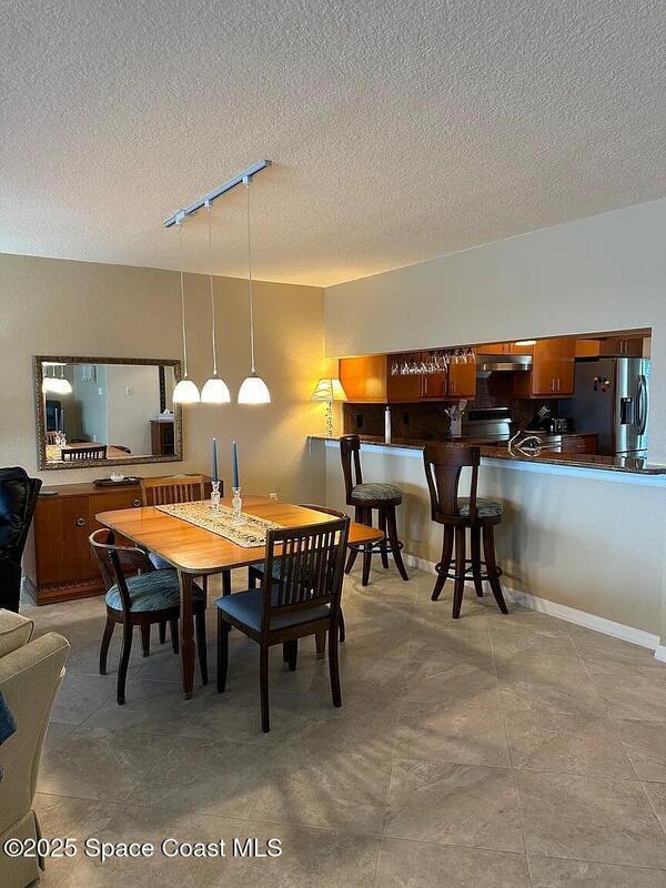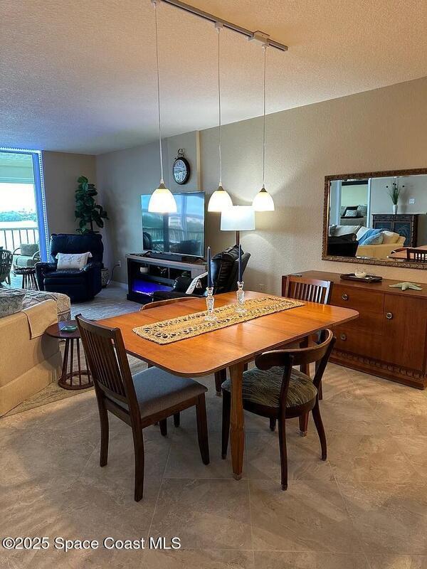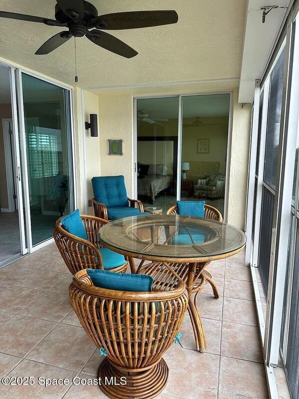 Beautifully furnished riverfront retreat located on a private bay of the Banana River in a quiet Cocoa Beach community. Enjoy stunning water views and daily sightings of birds, dolphins, manatees, and even gators--binoculars included. Relax on the screened patio with comfortable seating, perfect for coffee, dining, or evening cocktails while overlooking the water. Updated kitchen and baths provide a modern, move-in-ready feel.Take in breathtaking sunsets from the dockside benches with western exposure. Walk to the beach, Publix, restaurants, and the world-famous Ron Jon Surf Shop. Just a short drive or bike ride to downtown Cocoa Beach, the Cocoa Beach Pier, and local favorites like Coconuts on the Beach.Includes one underground parking space plus additional outdoor parking. Quiet, well-maintained community.3-month minimum stay required.