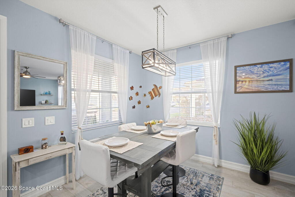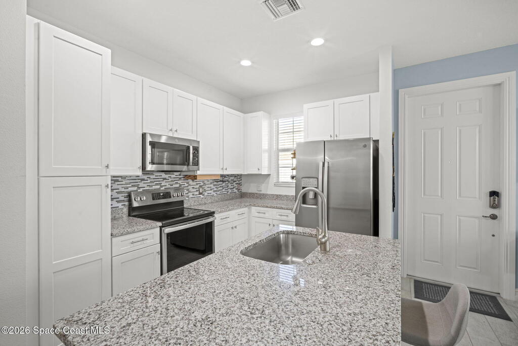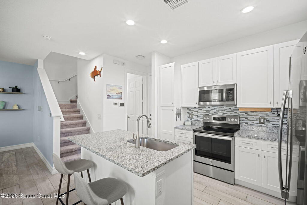 Step into easy coastal living in this nearly-new townhome tucked inside the gated community of Riverwalk of Melbourne, where every detail feels thoughtfully designed for comfort, style, and everyday enjoyment.Built in 2022, this 3-bedroom, 2.5-bath home welcomes you with a light-filled open layout and a calming palette inspired by the coast. Sunlight pours through generous windows, dancing across beautiful wood-look tile floors and creating a space that feels both fresh and inviting from the moment you walk in.The heart of the home, in the kitchen, is where mornings begin and evenings come together. Featuring crisp white cabinetry, gleaming granite countertops, and sleek GE Profile appliances, it's a space that's as functional as it is beautiful. Whether you're preparing a quiet breakfast or hosting friends, everything flows effortlessly into the main living area.